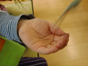 頭が絵具で赤くなっていて、ちょっと反省した子どもたちでした。