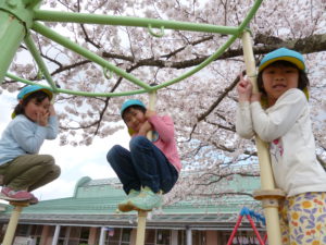 桜の下の登り棒はいつもより一層気持ちがいいことでしょうね。