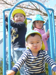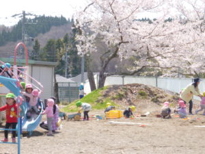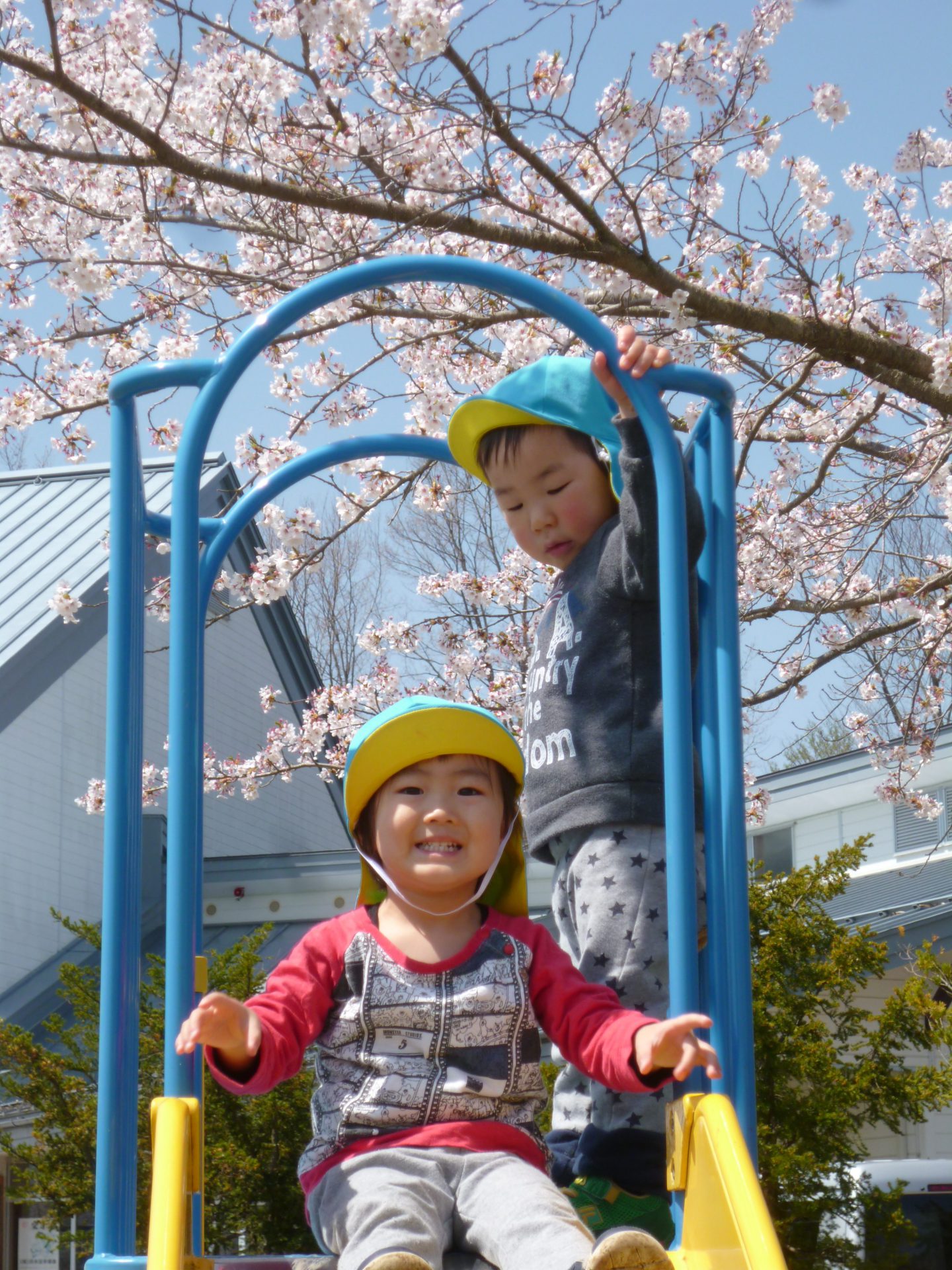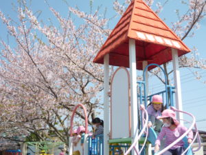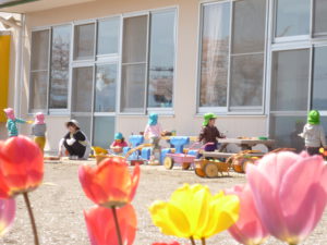 桜も、チューリップも綺麗な南部保育園の園庭。