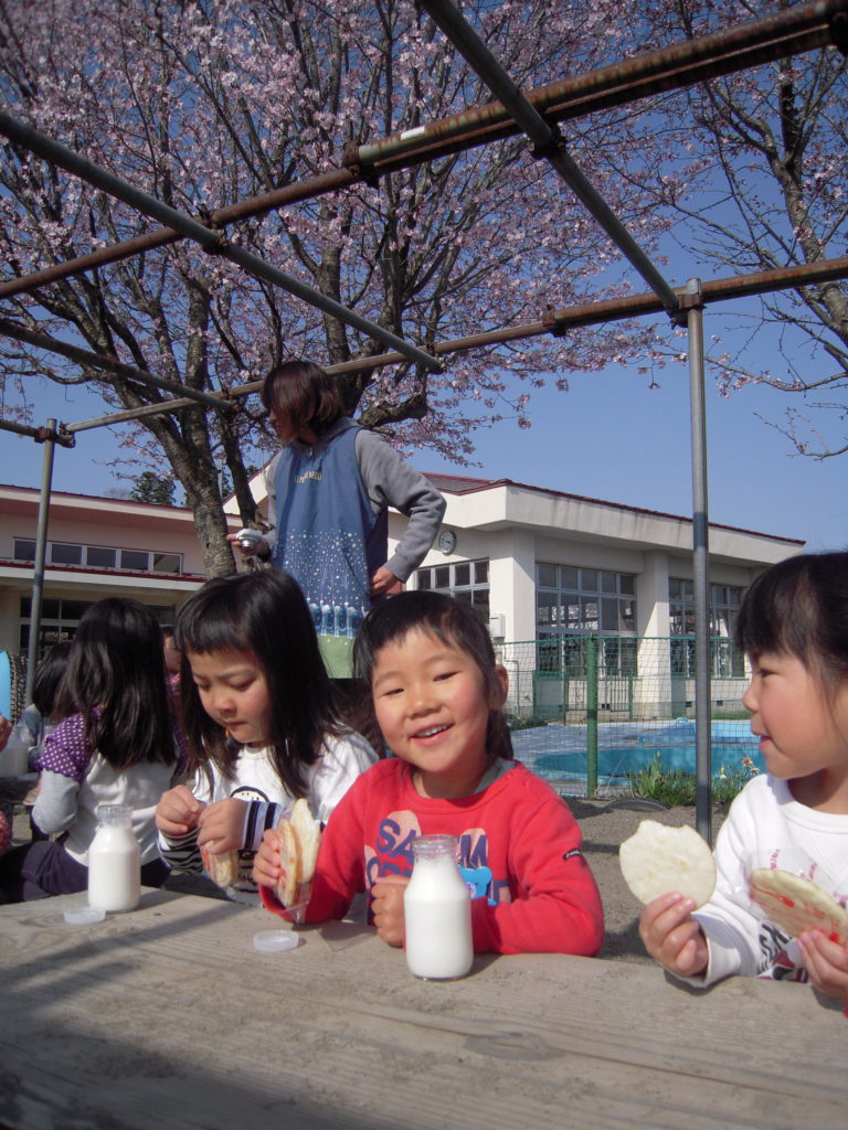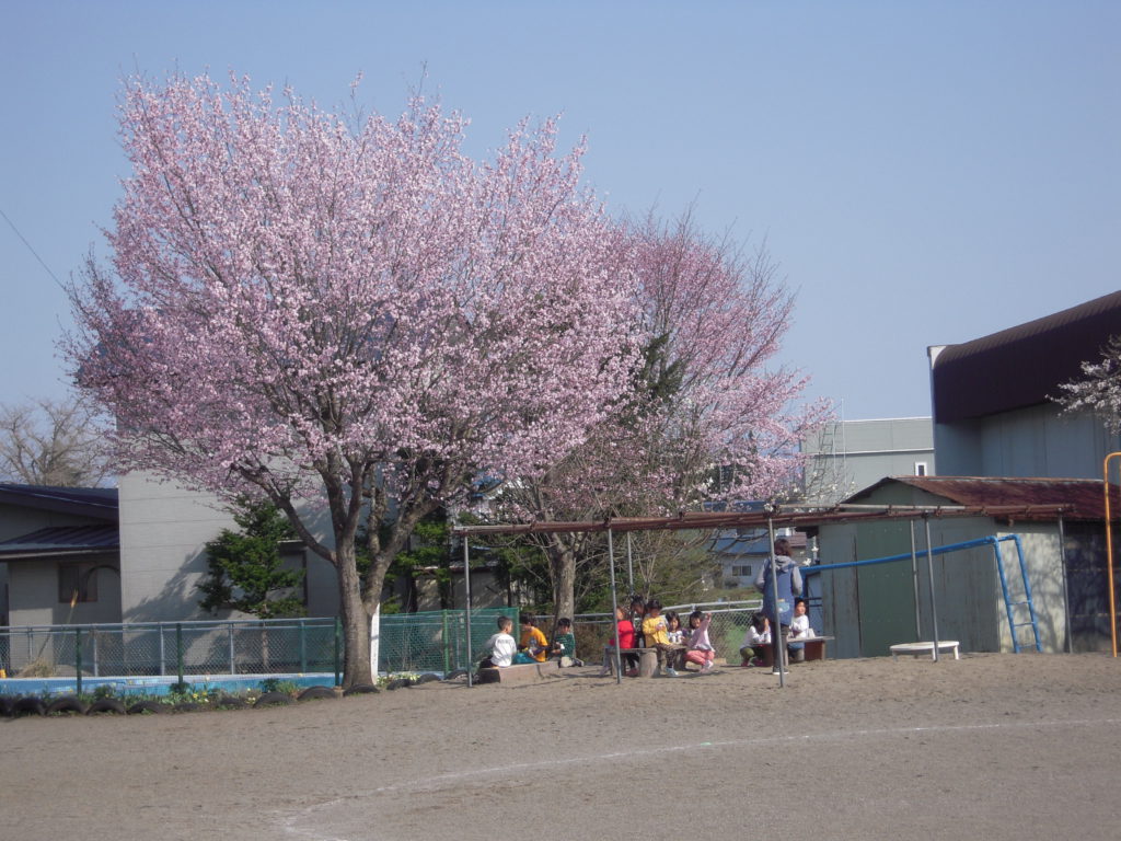 ここ数年、毎年柏原保育園では桜が咲く頃、お花見をしながらおやつを食べることが定番になっています。