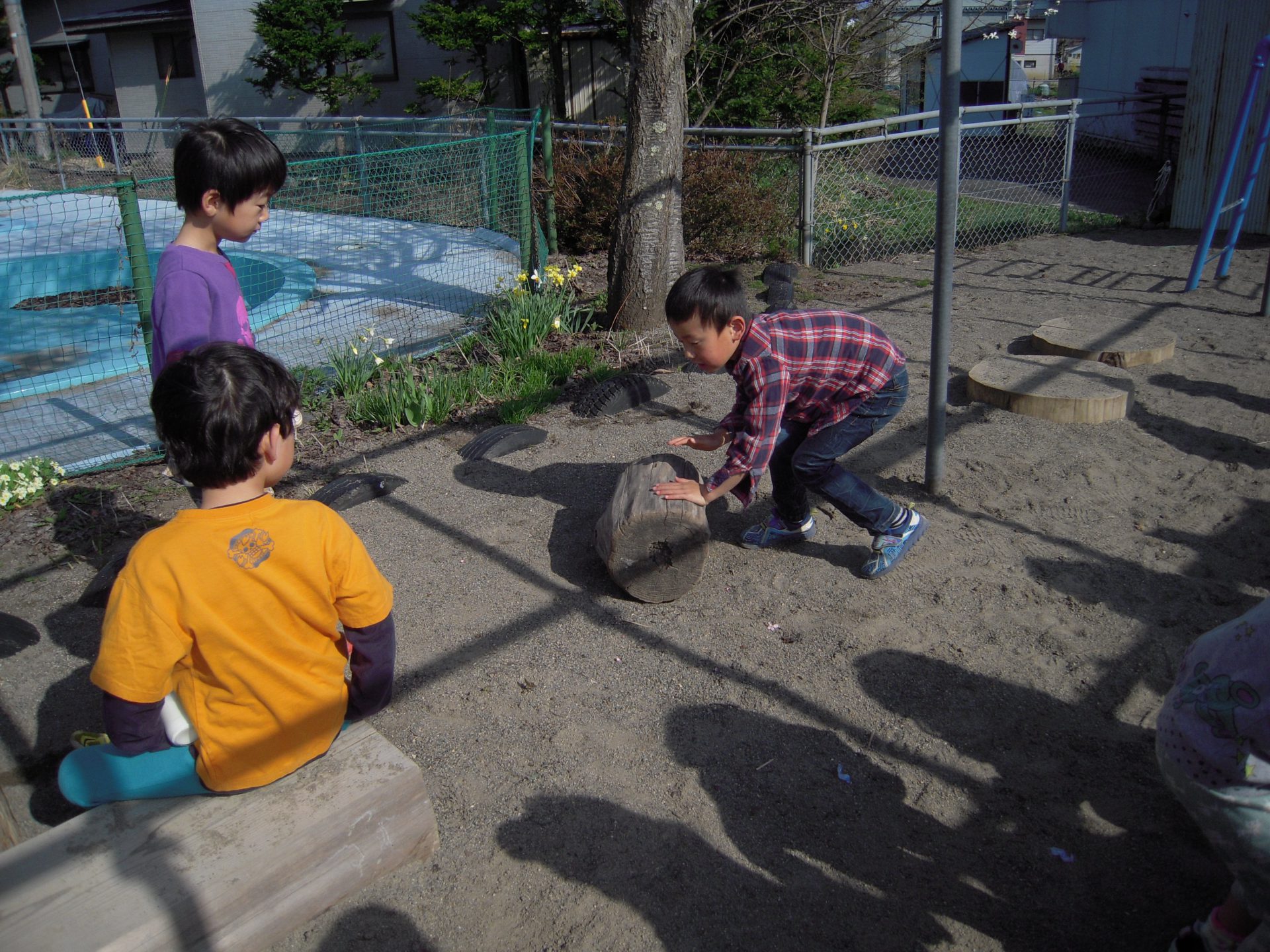 その1週間後の誕生会の日のお昼、外を見るとまた、年長さんの姿が!
