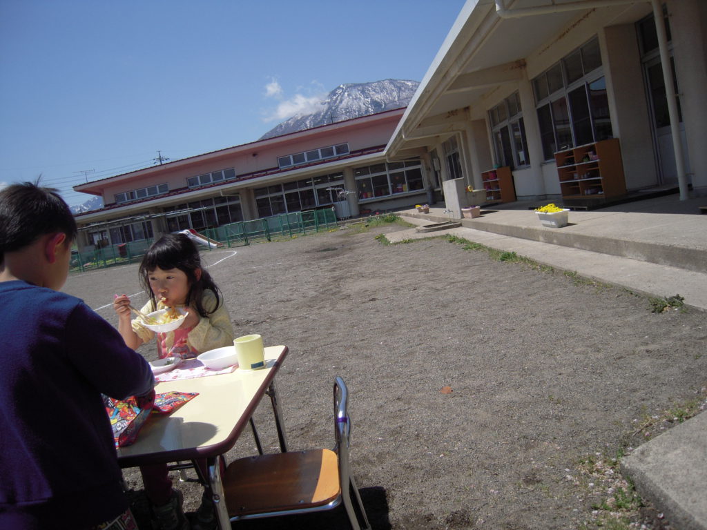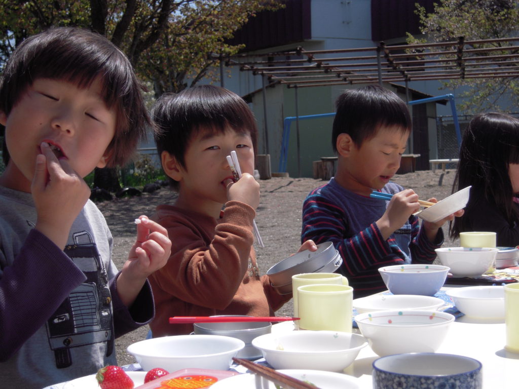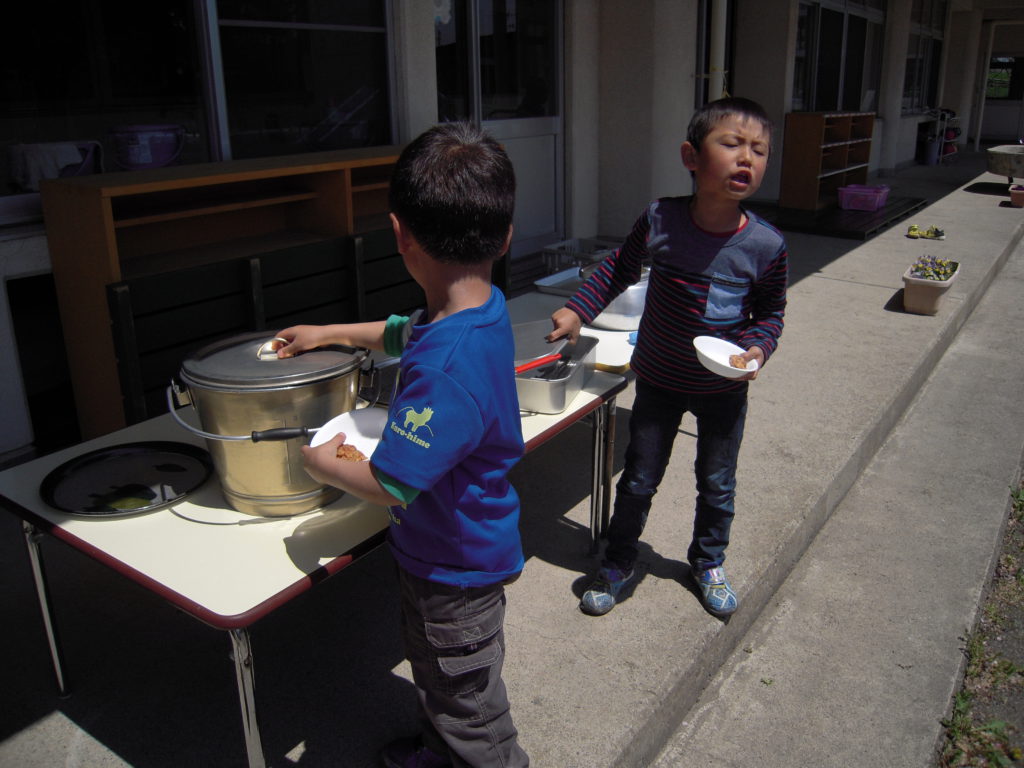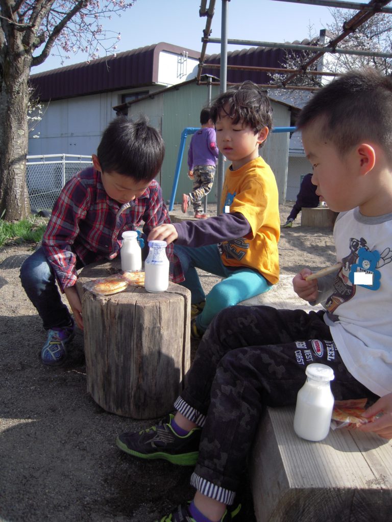 この日のおやつはおせんべいだったのですが、おせんべいも外で食べるといつもよりちょっとおいしく感じますね。