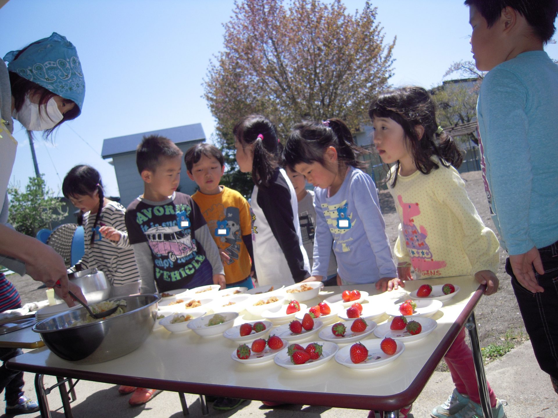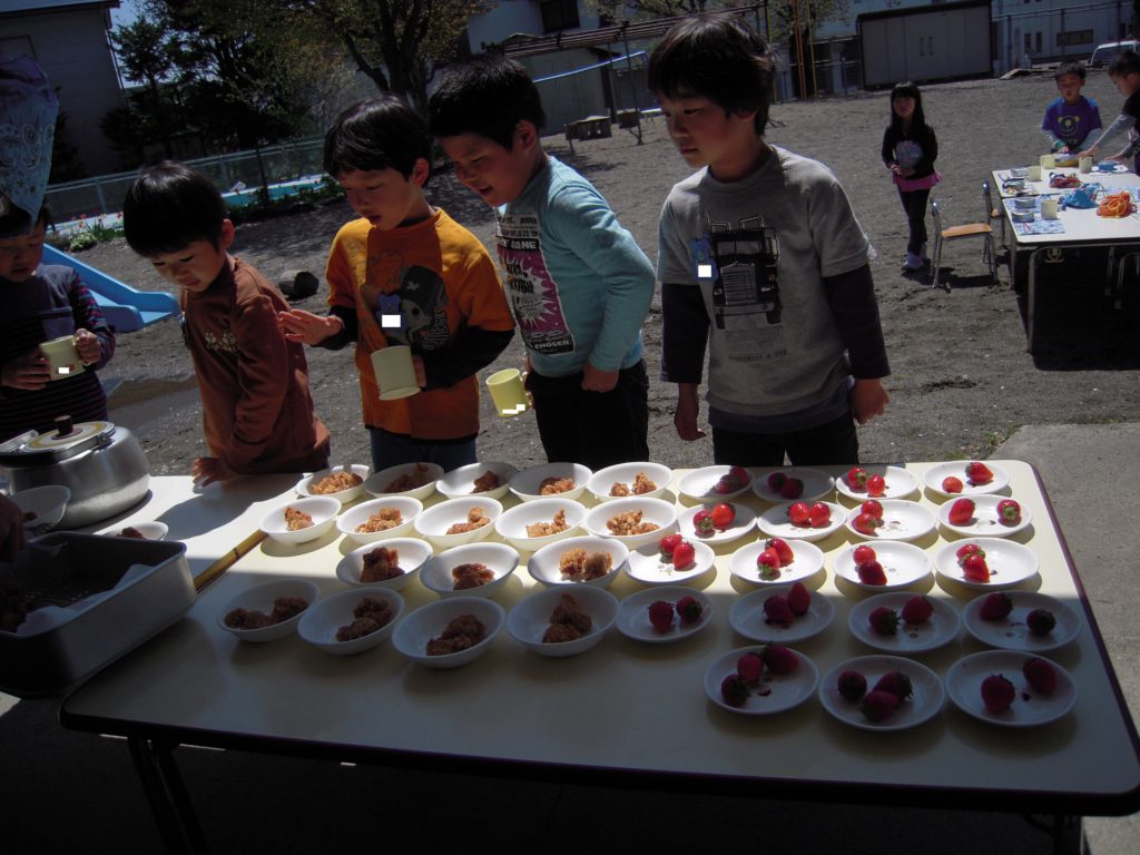 「やったー!おまつりみたい!」と次々に取りに来るこどもたち。