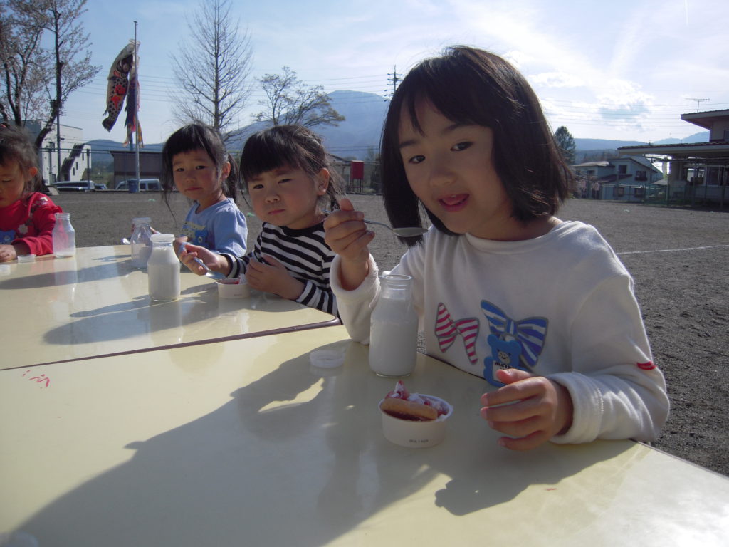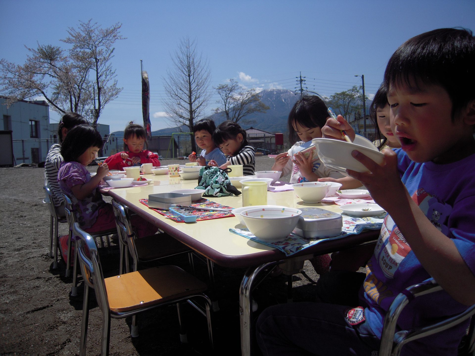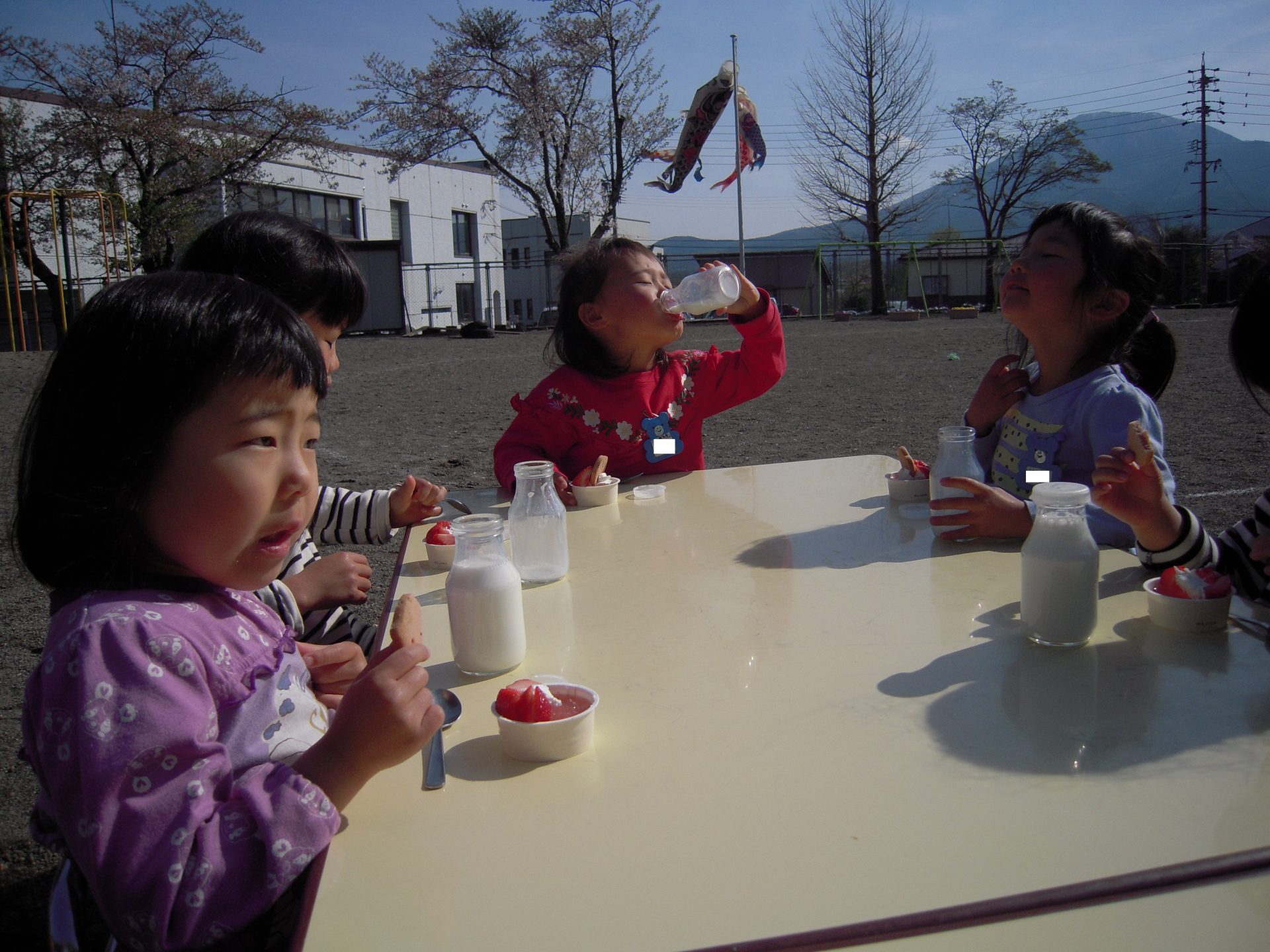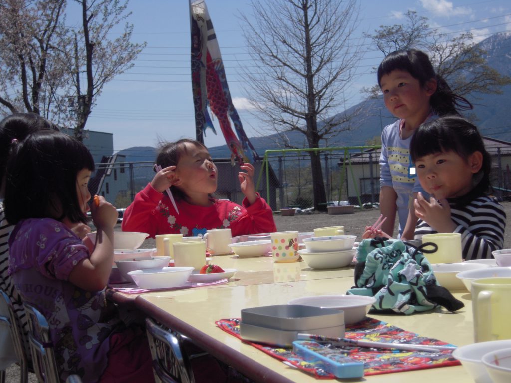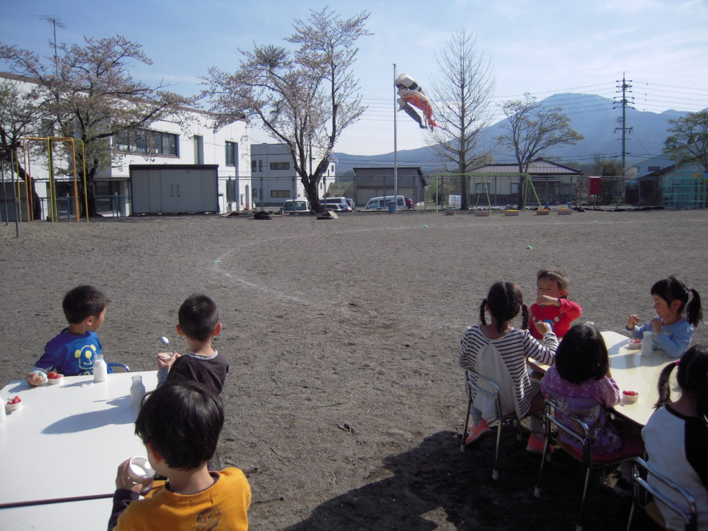 「みんなでこいのぼりを見ながら外で給食を食べたい!」