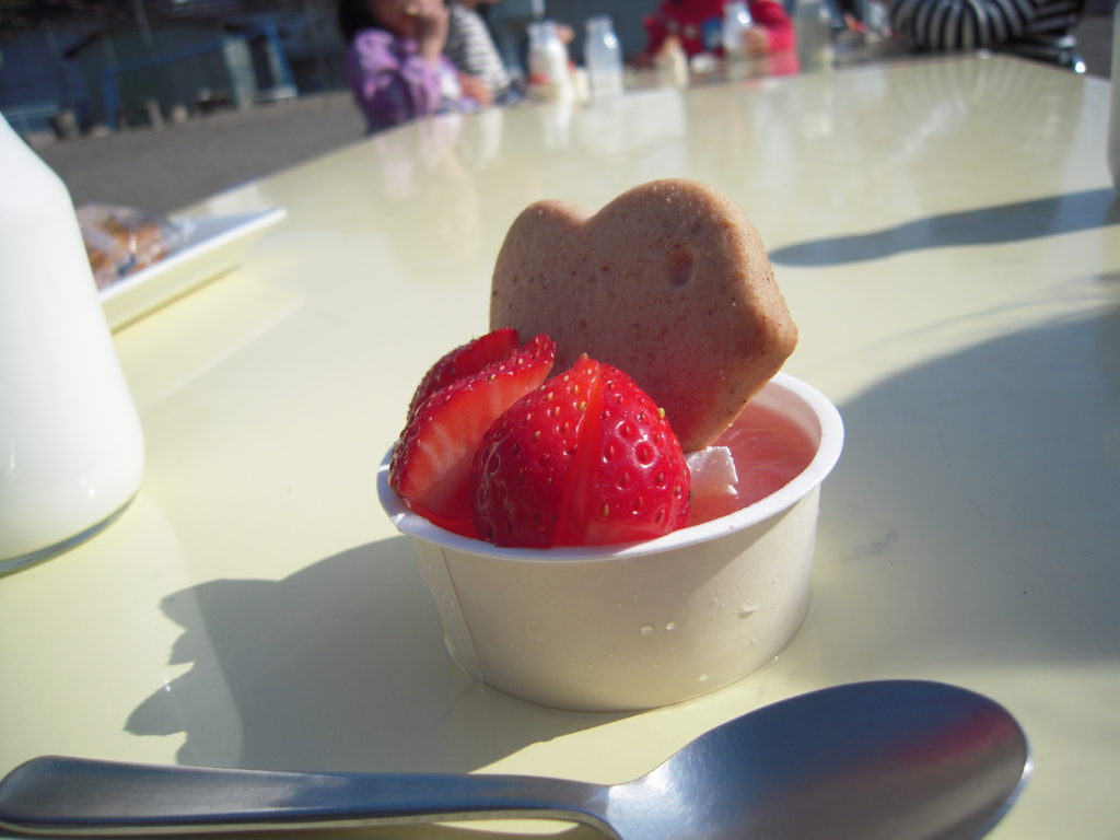 リクエスト通り、カメラ持参で一緒に外でおやつをいただきました。