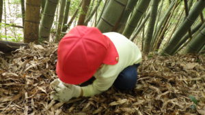 ・今まで山探検を怖がっていたこどもたちが、「たけのこを採りたい」という一心で恐怖心など全くないかのようにぐんぐん竹やぶの中を動き回る姿が嬉しかった。