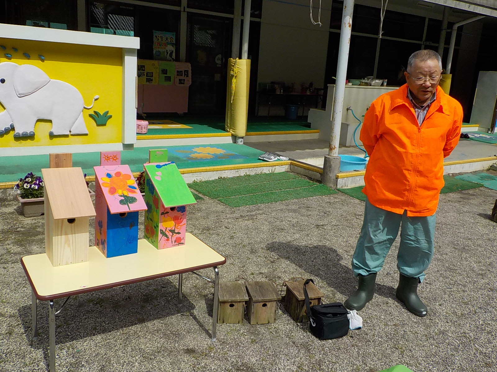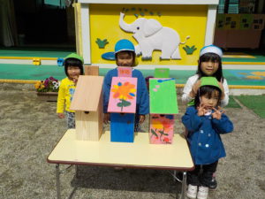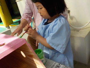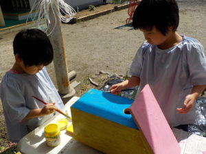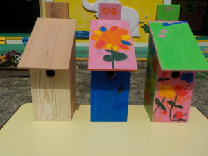 長野県県民文化部次世代サポート課(長野ライオンズクラブさん寄贈)から頂いた小鳥の巣箱に子どもたちが色を塗ってオリジナル巣箱を作りました。