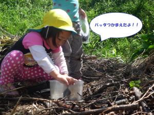 保育園のわくわく広場で見つけたかげちょろ。