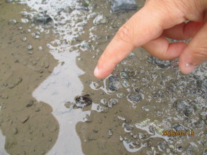 カエル探しをしていると水たまりにゲンゴロウ発見!