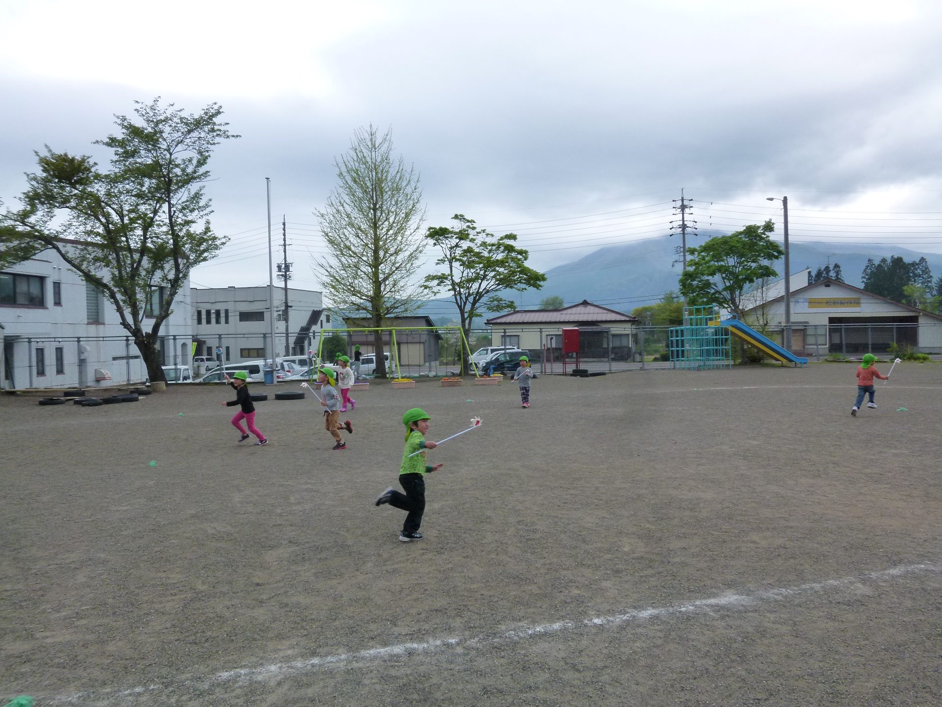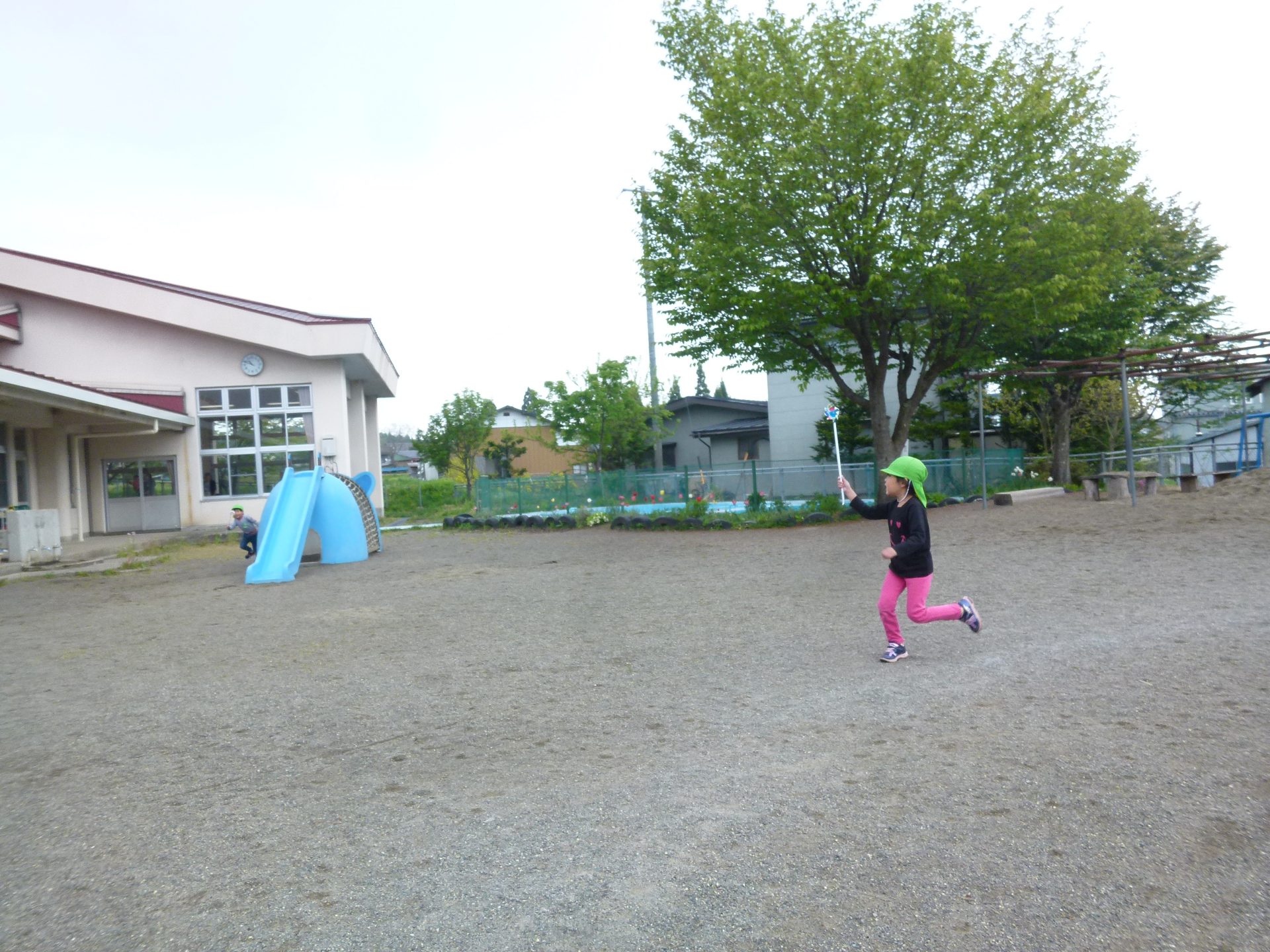 保育園の鯉のぼりも元気に泳ぐもとで子どもたちもたくさん体を使って遊んでいます。