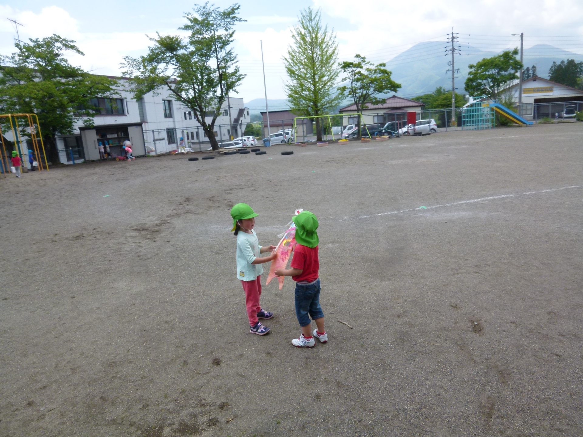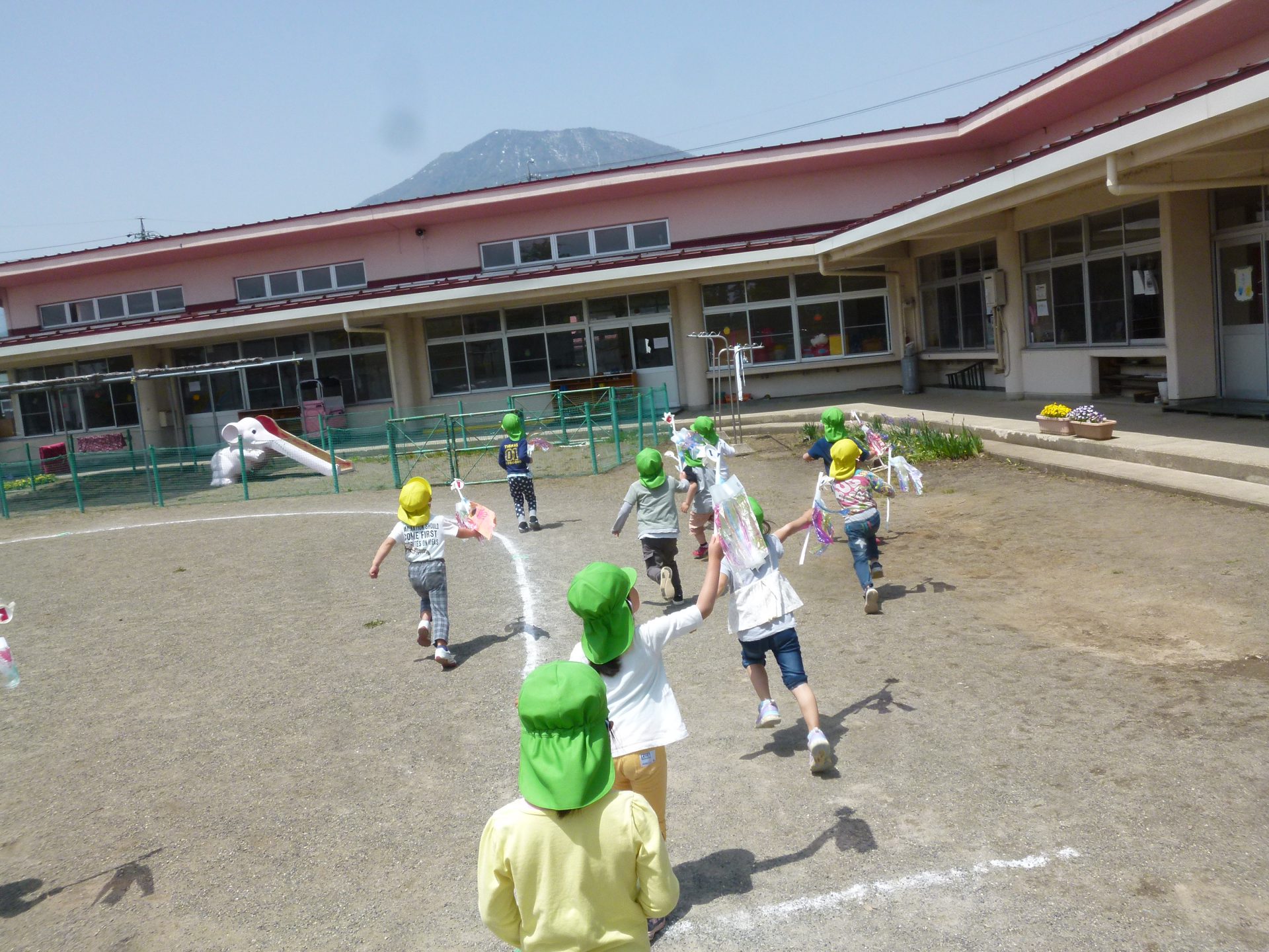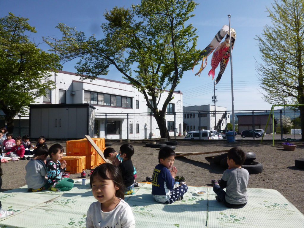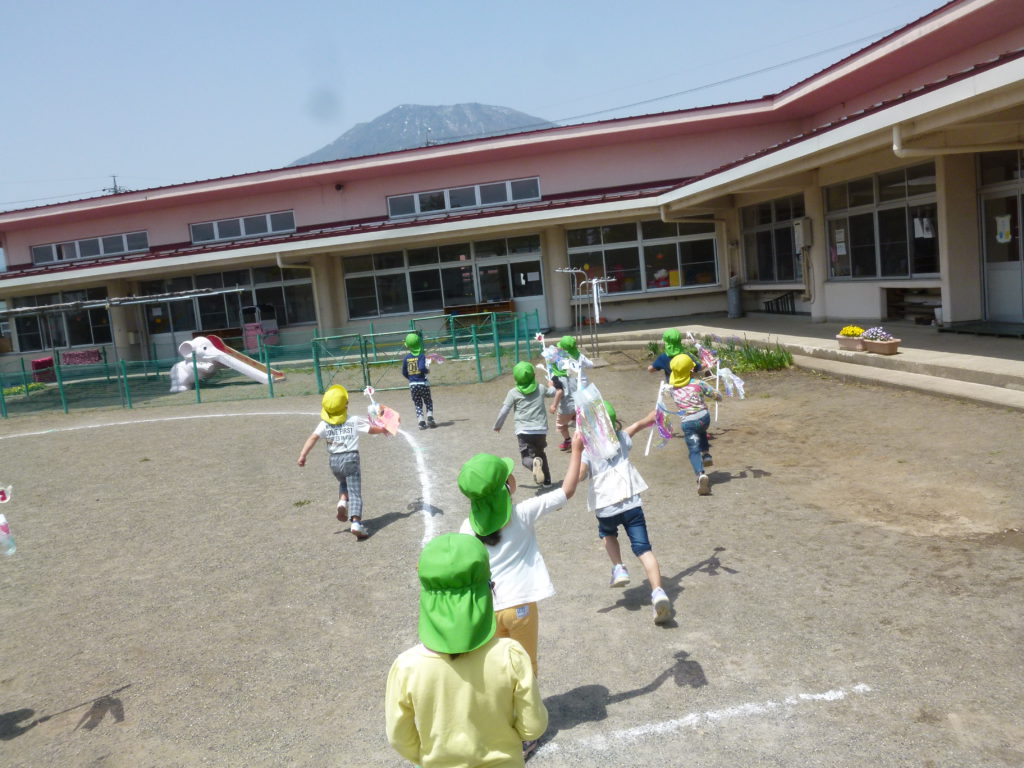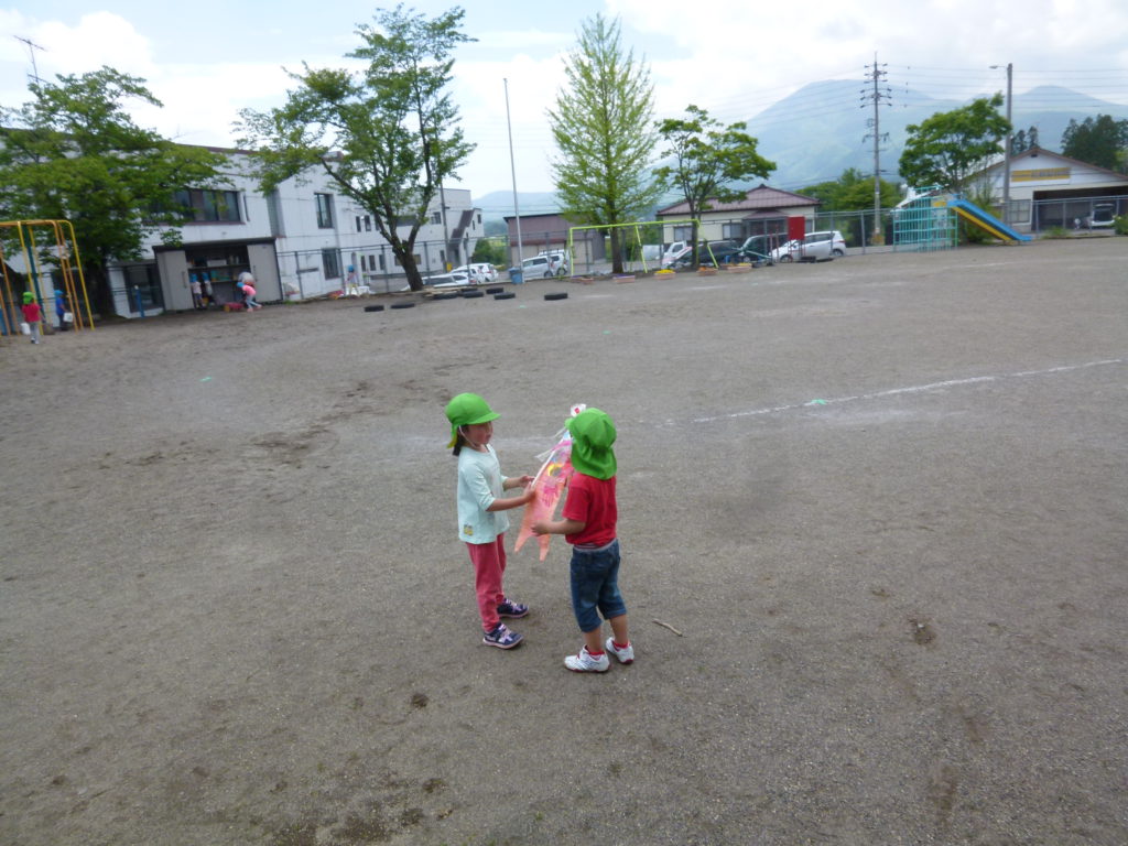 園庭の鯉のぼりも風に乗って元気良く泳ぐ姿を見て、