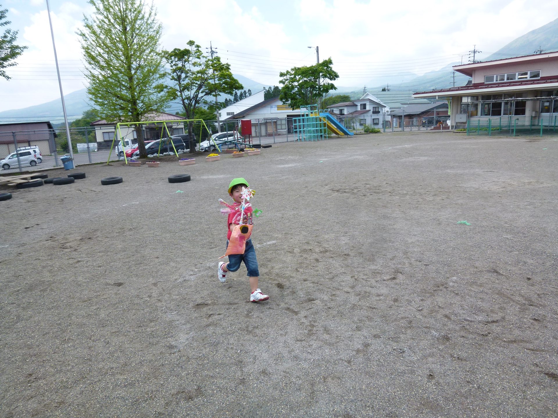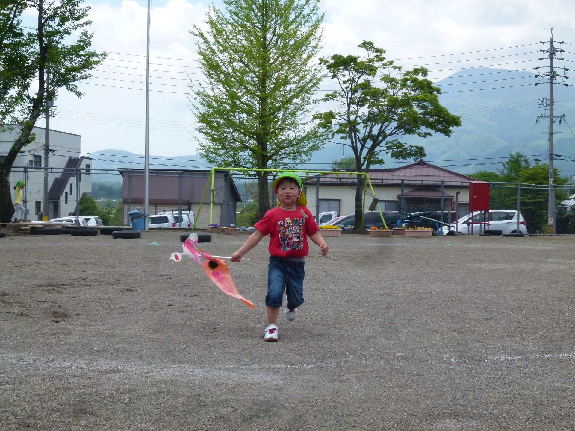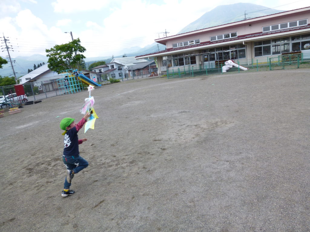自分の作った鯉のぼりも泳いでいるところが見たいと力いっぱいに走ります。