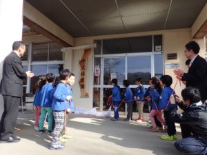 平成30年2月28日、看板の除幕式に参加する。序幕の仕方のリハーサルを事前に行い、やり方を知る。