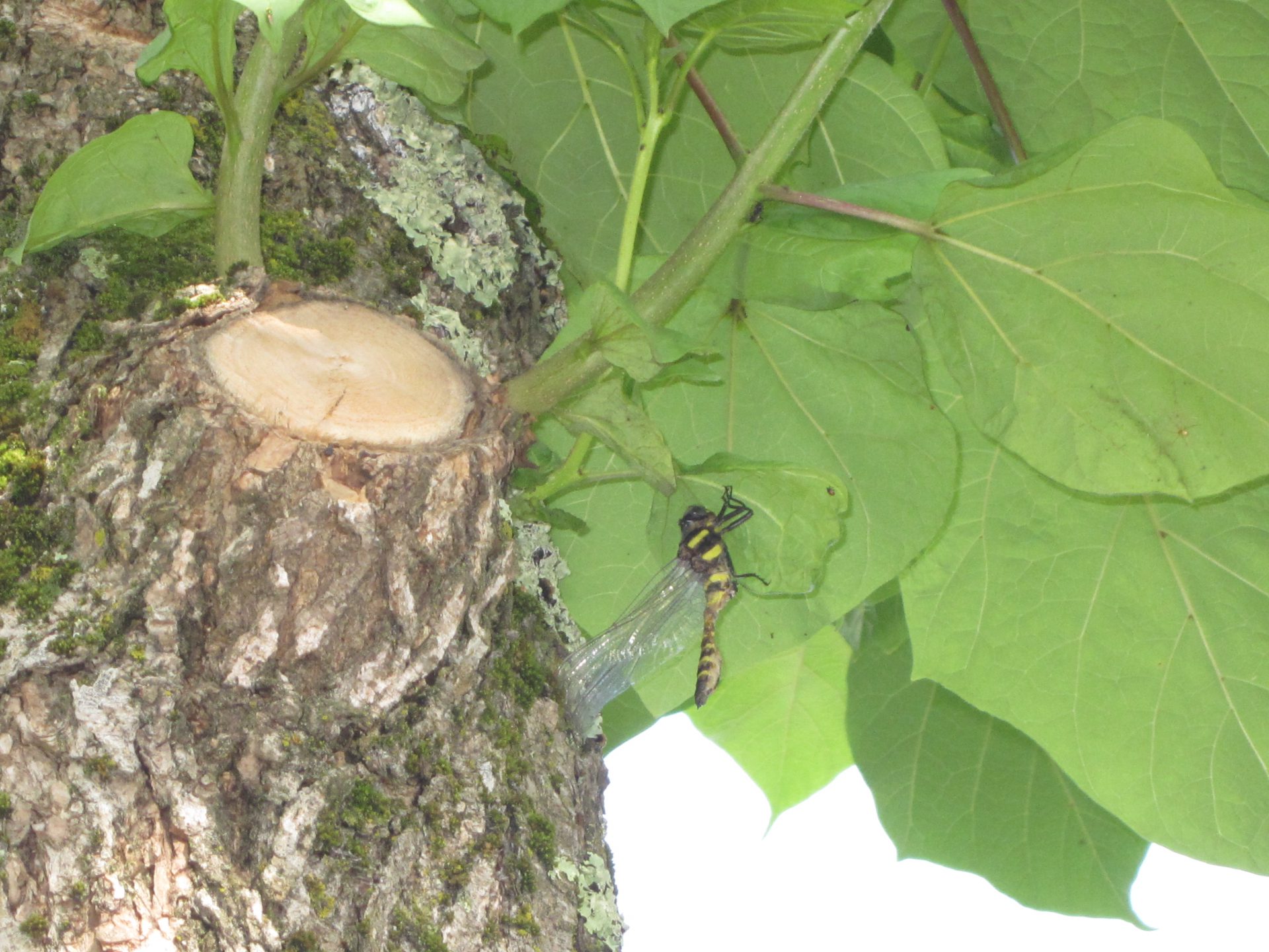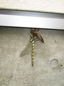 小さくなった洋服を脱いで、羽を乾かしてるんだよ。と聞いて、「セミと一緒だね!」「卵はどこにあるんだろう?」「なんていうトンボだろう?」
