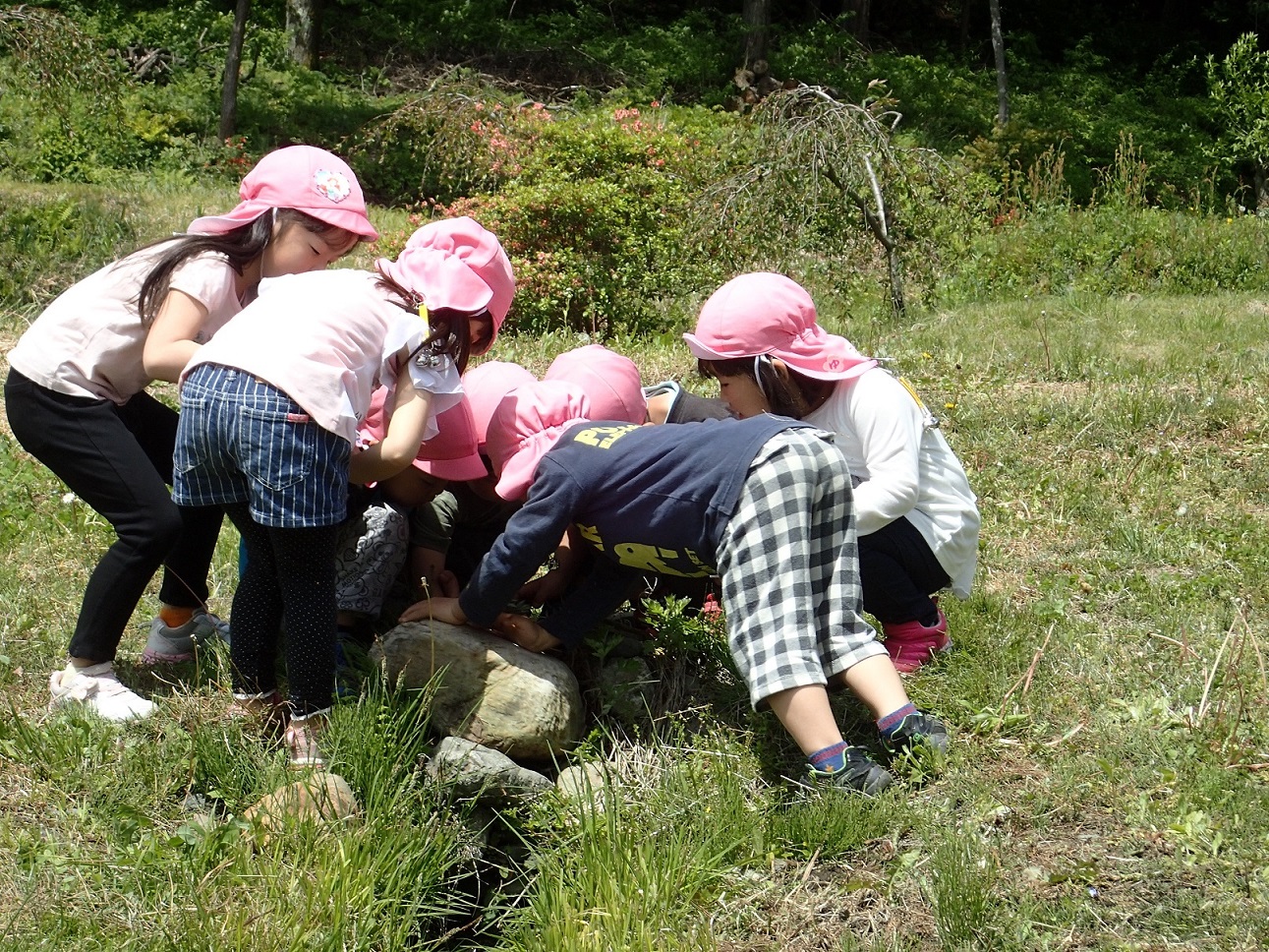 春の野での気づきや自ら遊びを見つけて欲しい。