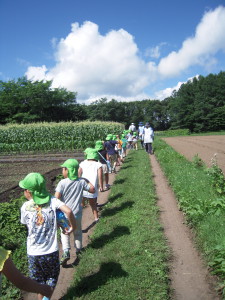 ブルーベリーの畑へ向かう途中でも、子ども達は