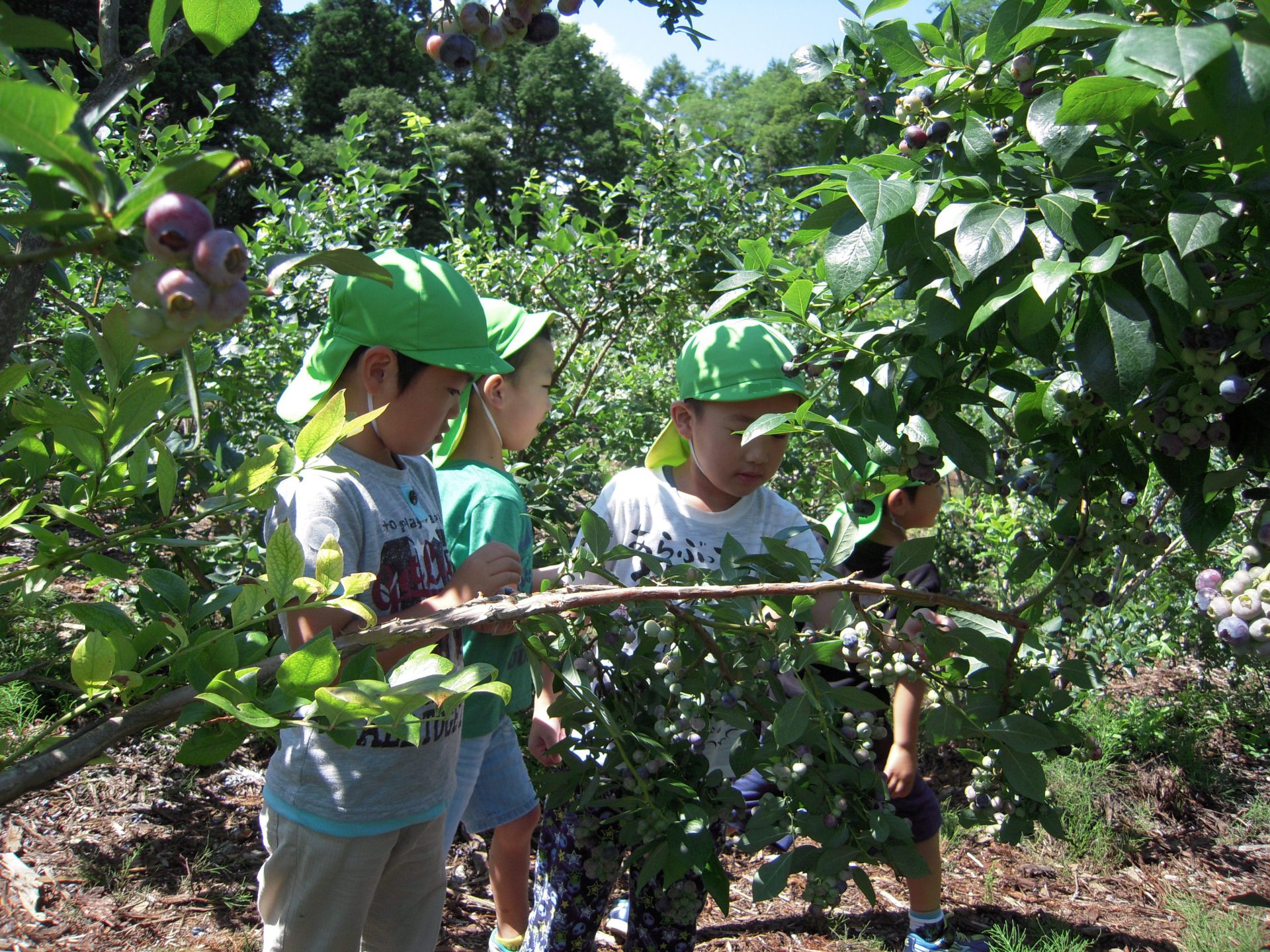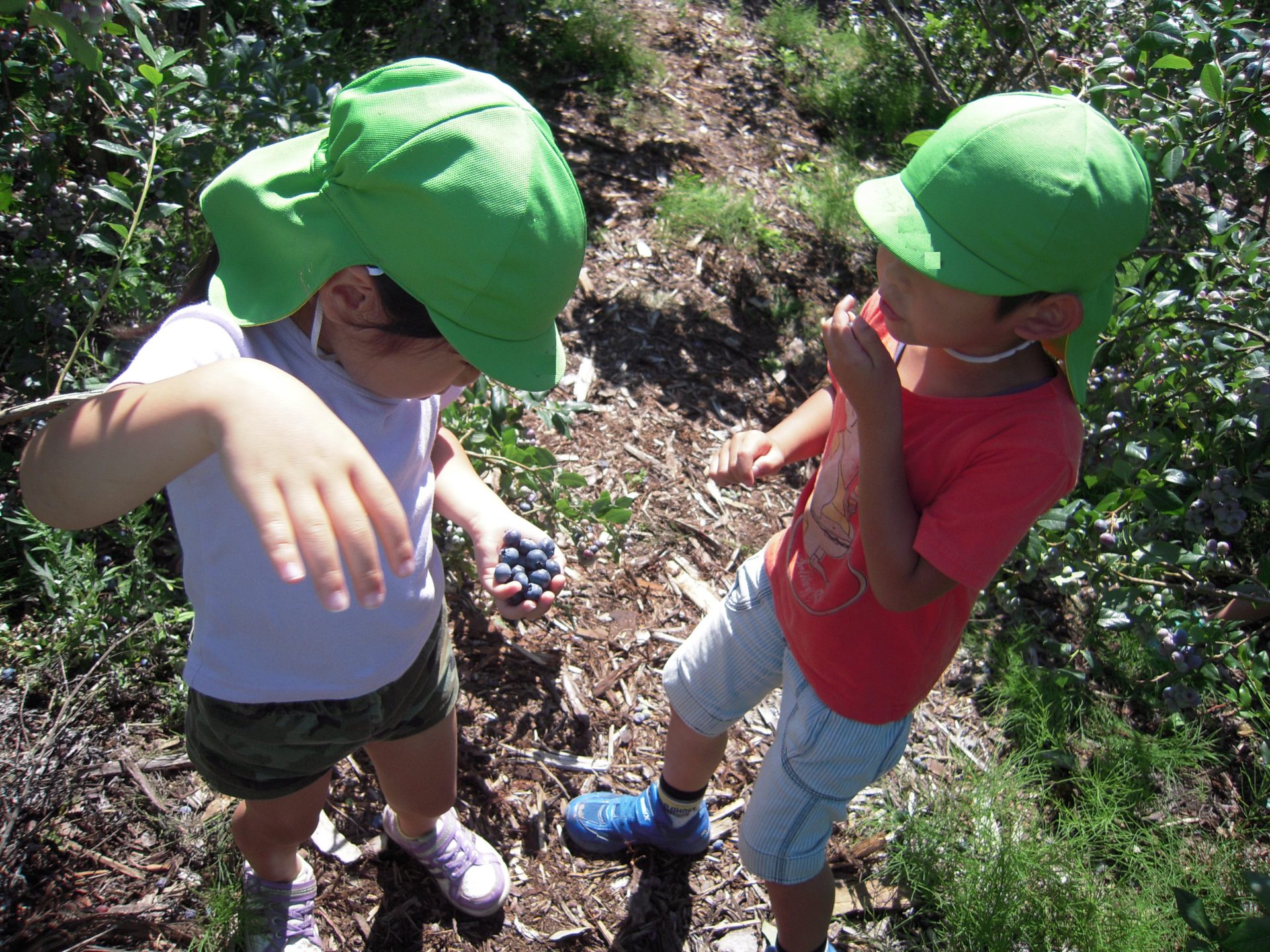 摘み取り体験は年長児のみですが、来週のおやつには「ブルーベリーヨーグルト」としてみんなでブルーベリーを味わいます。