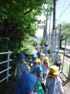 集合場所の竜峡中学校は、峠を越えて下りたところにあるので今日は年長と年中だけの交流です。