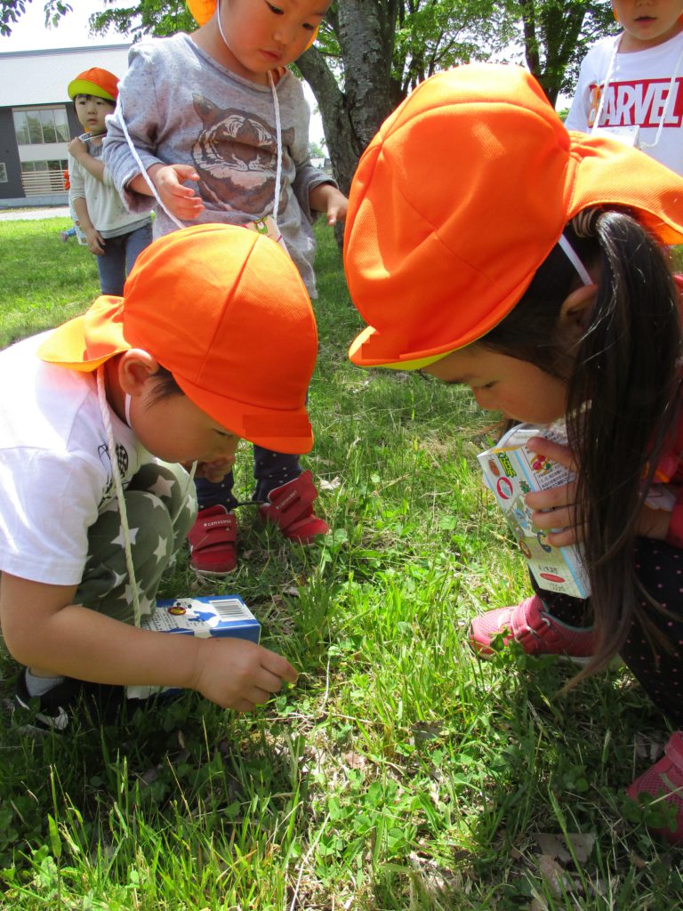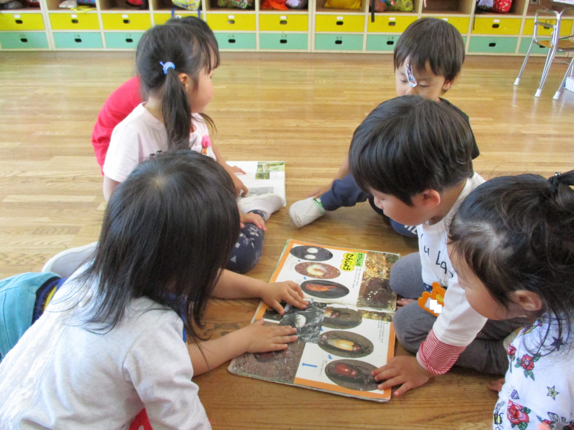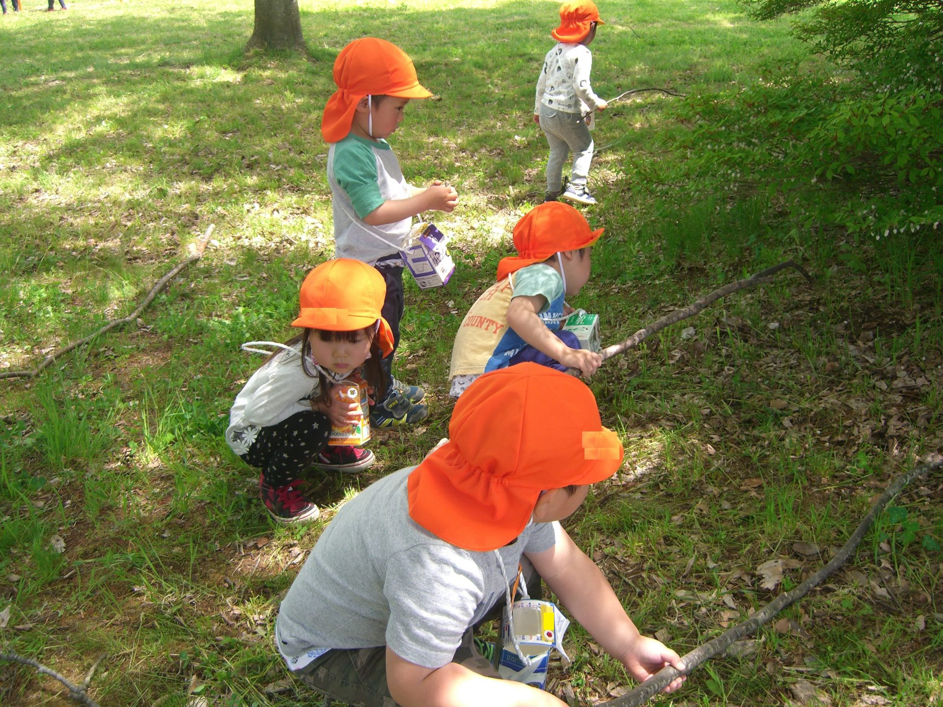 そして、お散歩で色々な生き物を見つけるうちに、生き物に興味を持った子ども達。園庭でもダンゴムシやカエル、ミミズなどを見つけて飼ってみたいという声も上がりました。