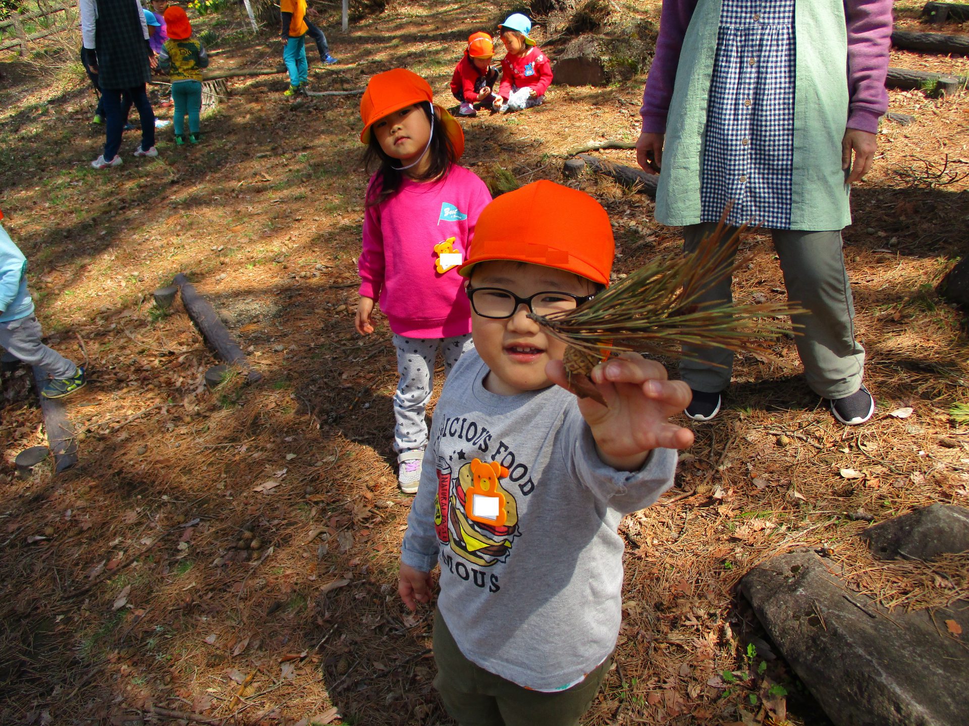 すぐに、お花が咲いてるー!松ぼっくりが落ちてるよ!と色々なものを発見する子ども達。