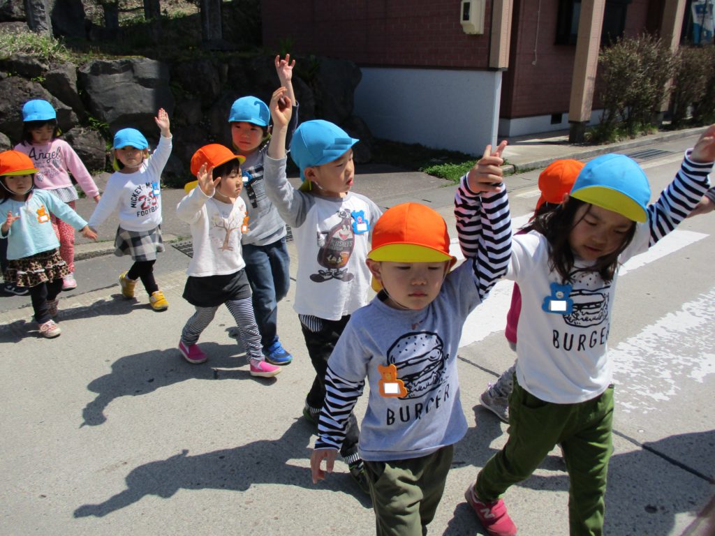 4、5歳のお友だちに手をつないでもらい、一緒に連れて行ってもらいました。
