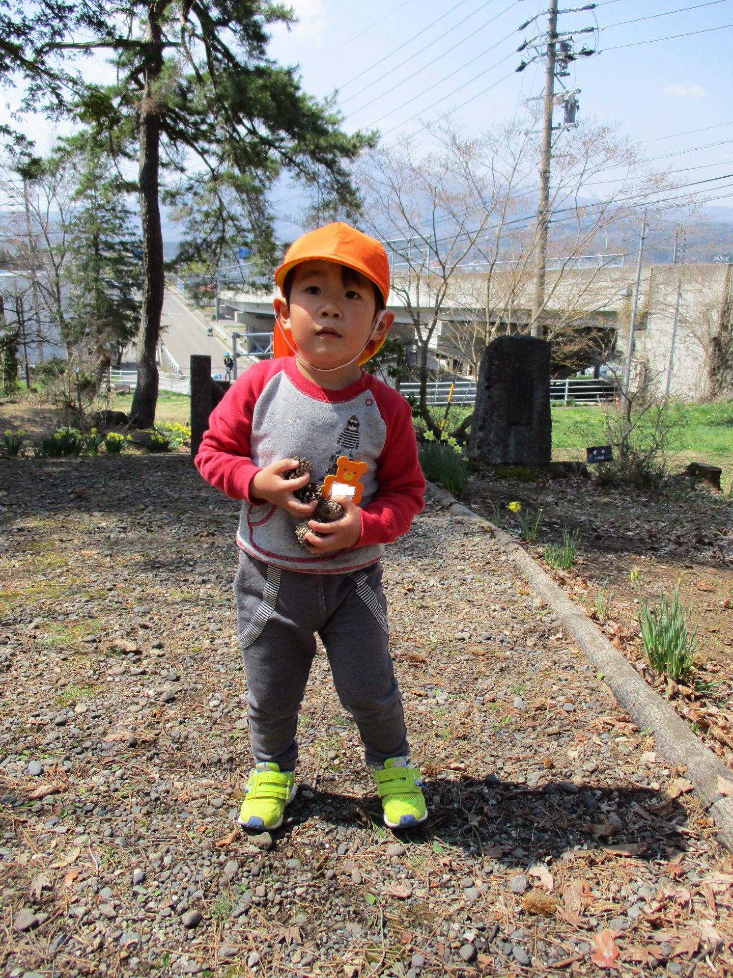 こんなに松ぼっくりを見つけたよ。お家にお土産に持って帰りたいなぁ・・・