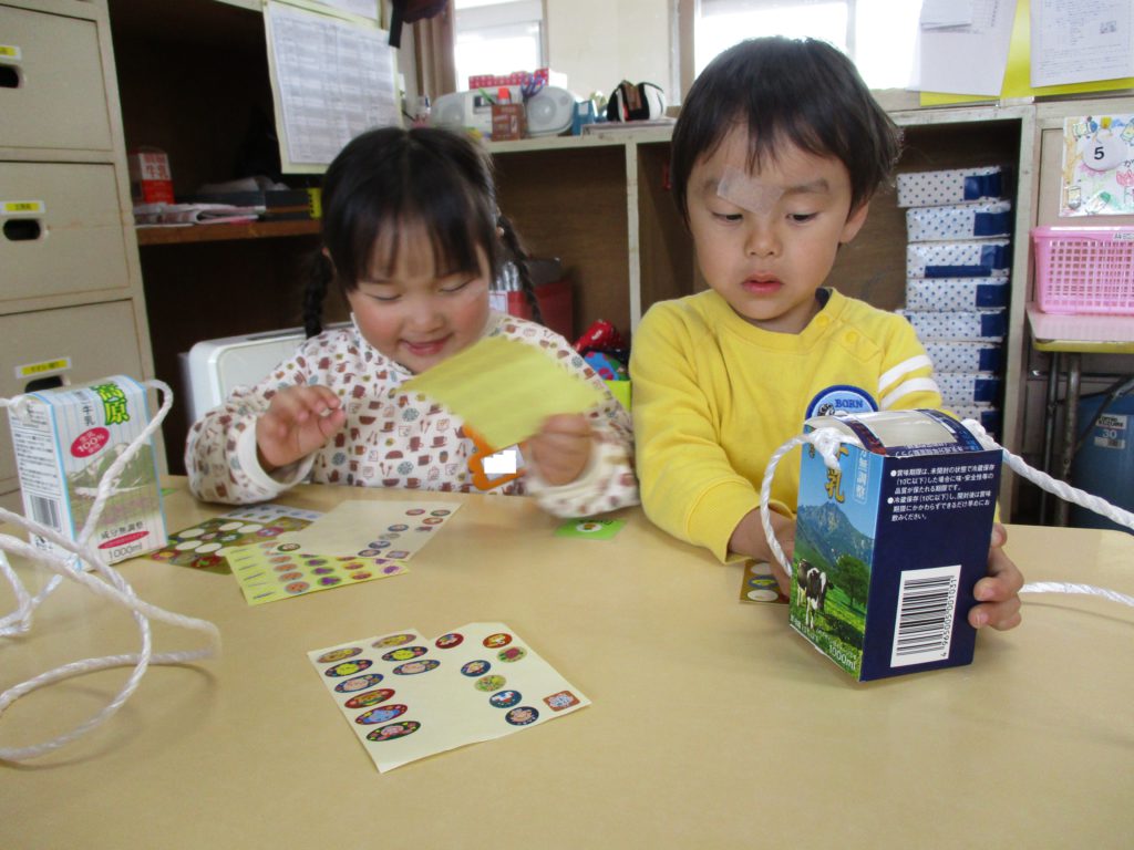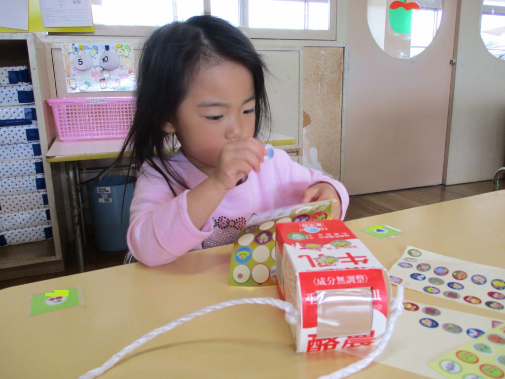 牛乳パックの入れ物をかわいく装飾して自分のバックを作ります。