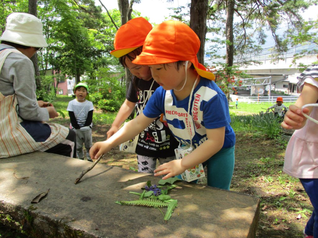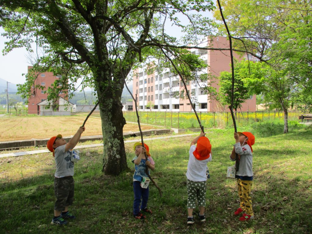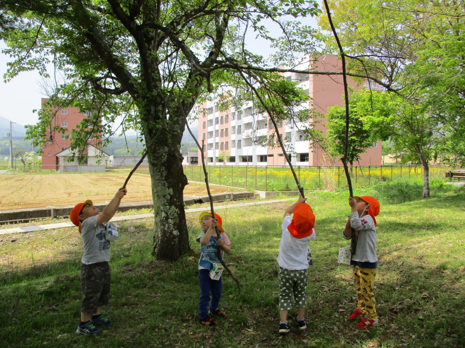 何にでも興味・関心を持つ子ども達。自然の中いると、自分たちで考えて遊具を作ったり、見つけたり、遊びが広がったりと、生き生きと遊んでいます。その声や姿、興味のあることを取り入れながら、日々を過ごしていきたいなと思います。