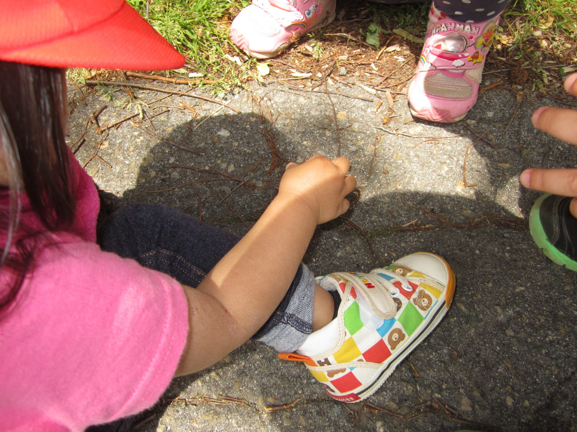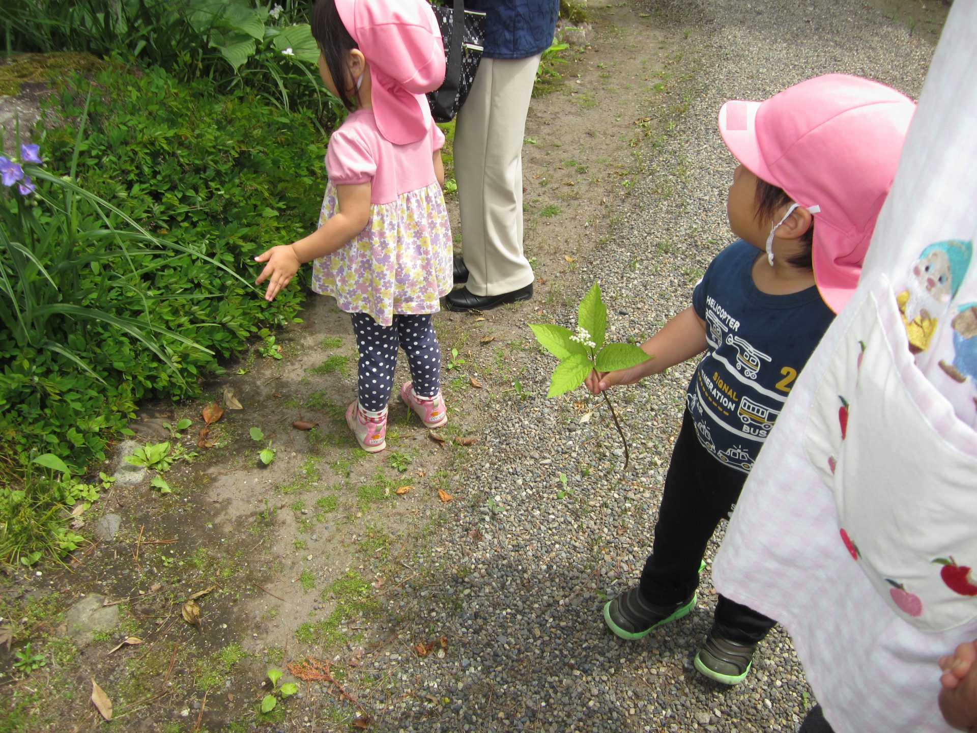 葉っぱにとまっているちょうちょに興味津々の子どもたちでした。