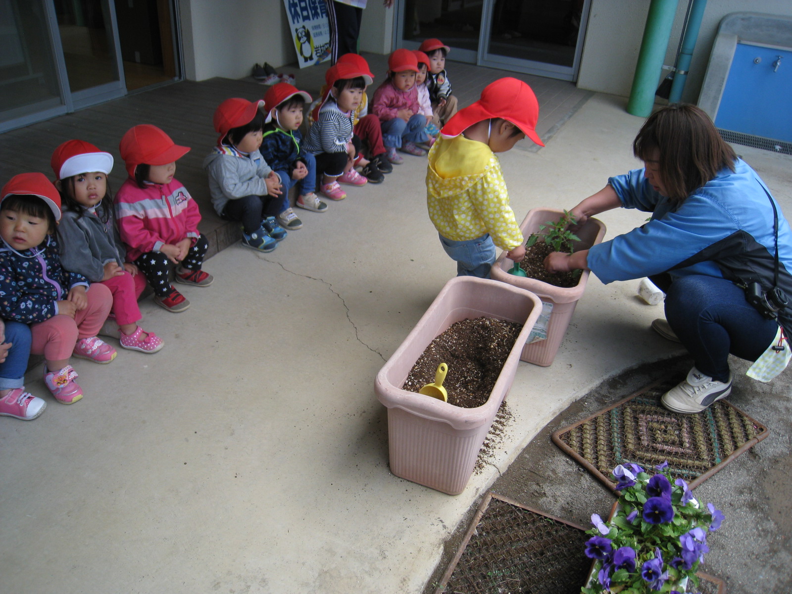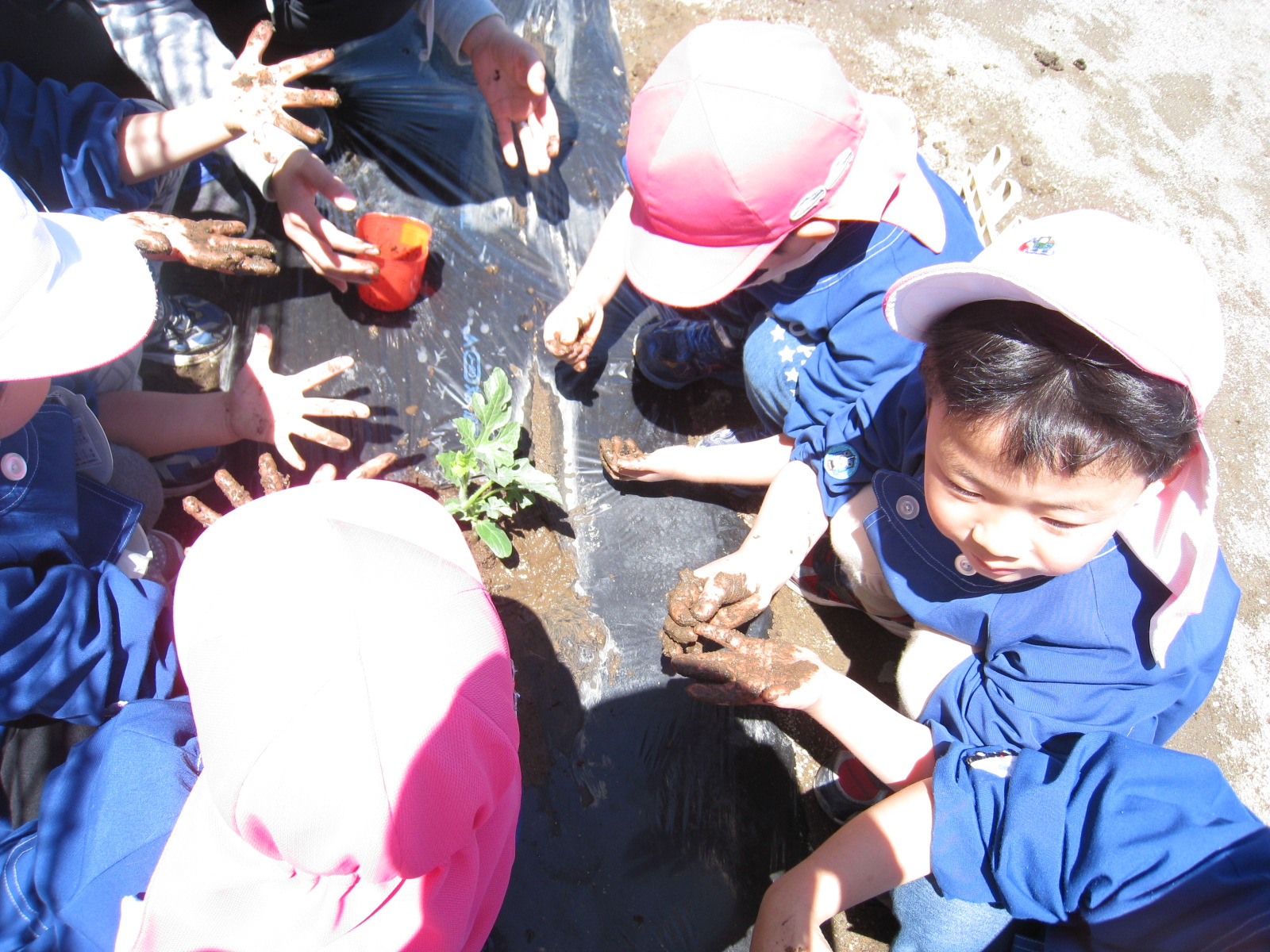 「おおきくなあれ」「いっぱいなあれ」とやさしく土のお布団をかけてお水をかけて手を合わせました。