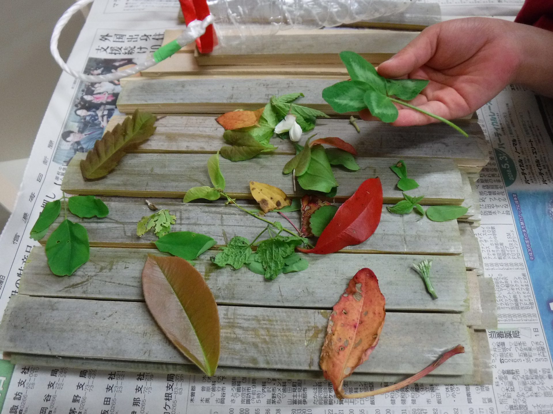 散歩でのお土産を並べてみると、「これはあの路で摘んだ四つ葉~」なんてできますよね。教材でまつぼっくりも売っていますが、それって・・・