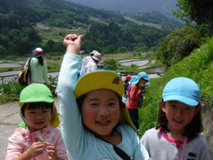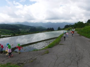 今日も並んではじっこを歩かない、戸隠の子どもたちです。