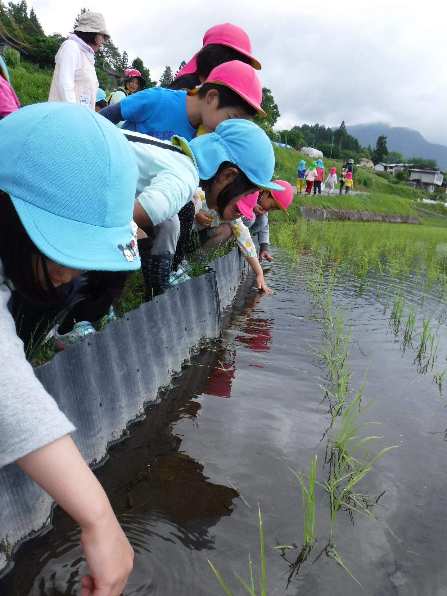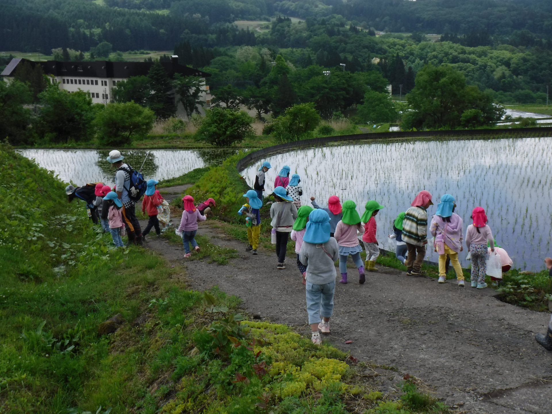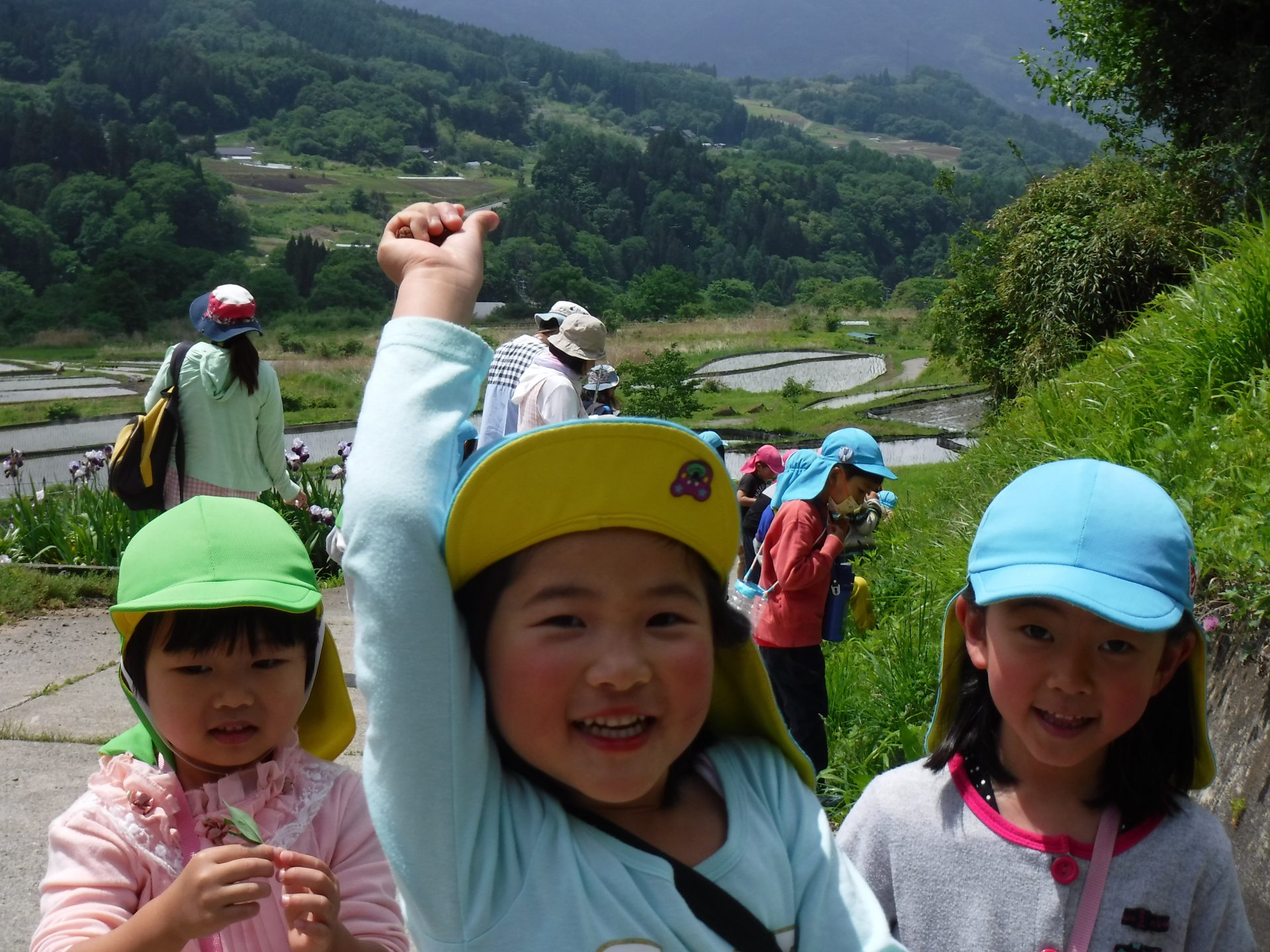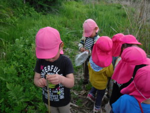 ヘビやハチの巣がないか、直前に保育士が探索してから子どもたちが入ります。分散して周囲を見渡しています。