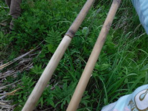 葦の茎と集めた熊笹の葉で作ったこいのぼりです。