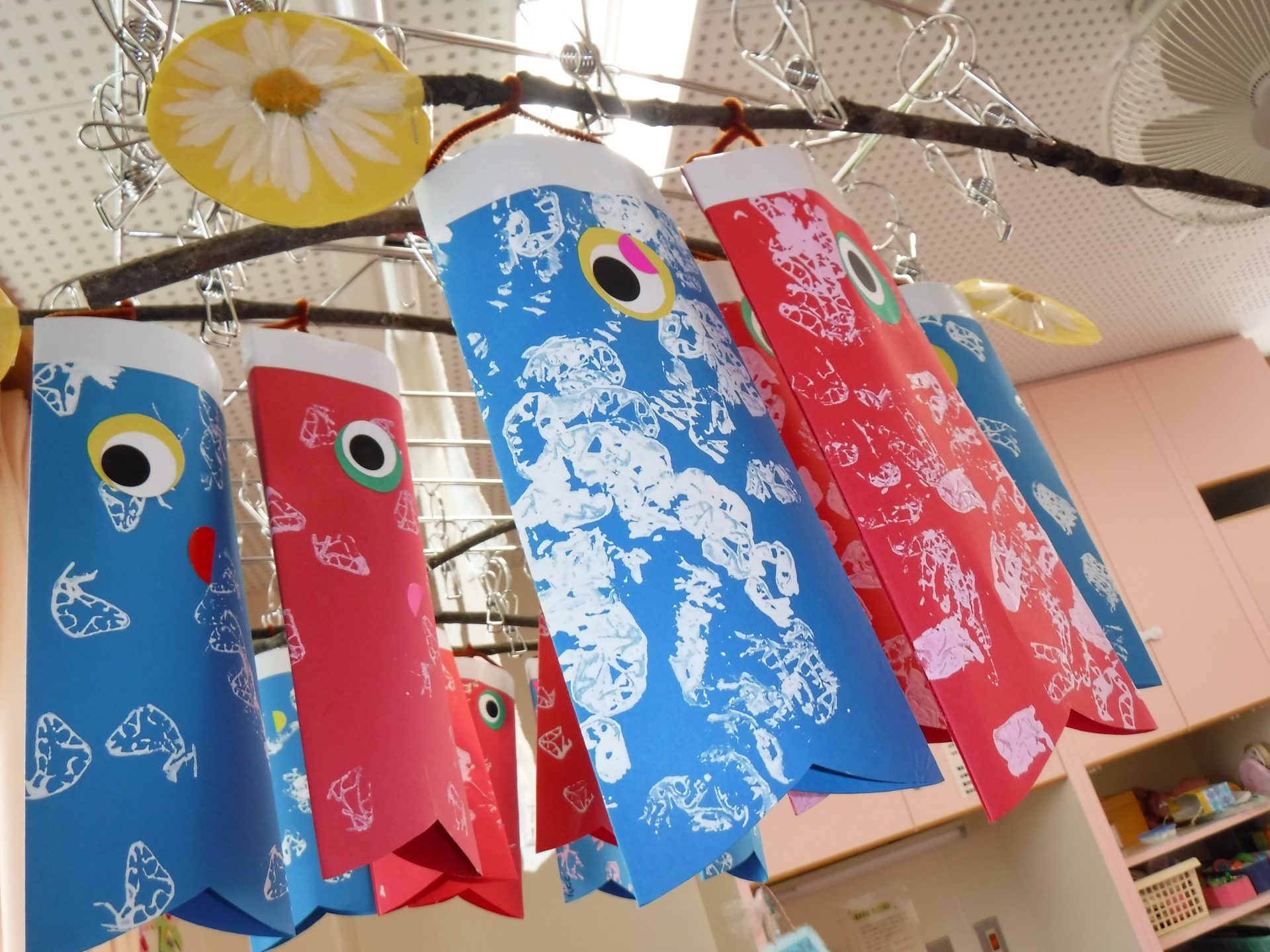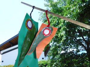未満児クラスでも、散歩で摘んだマーガレットを矢車としました。
