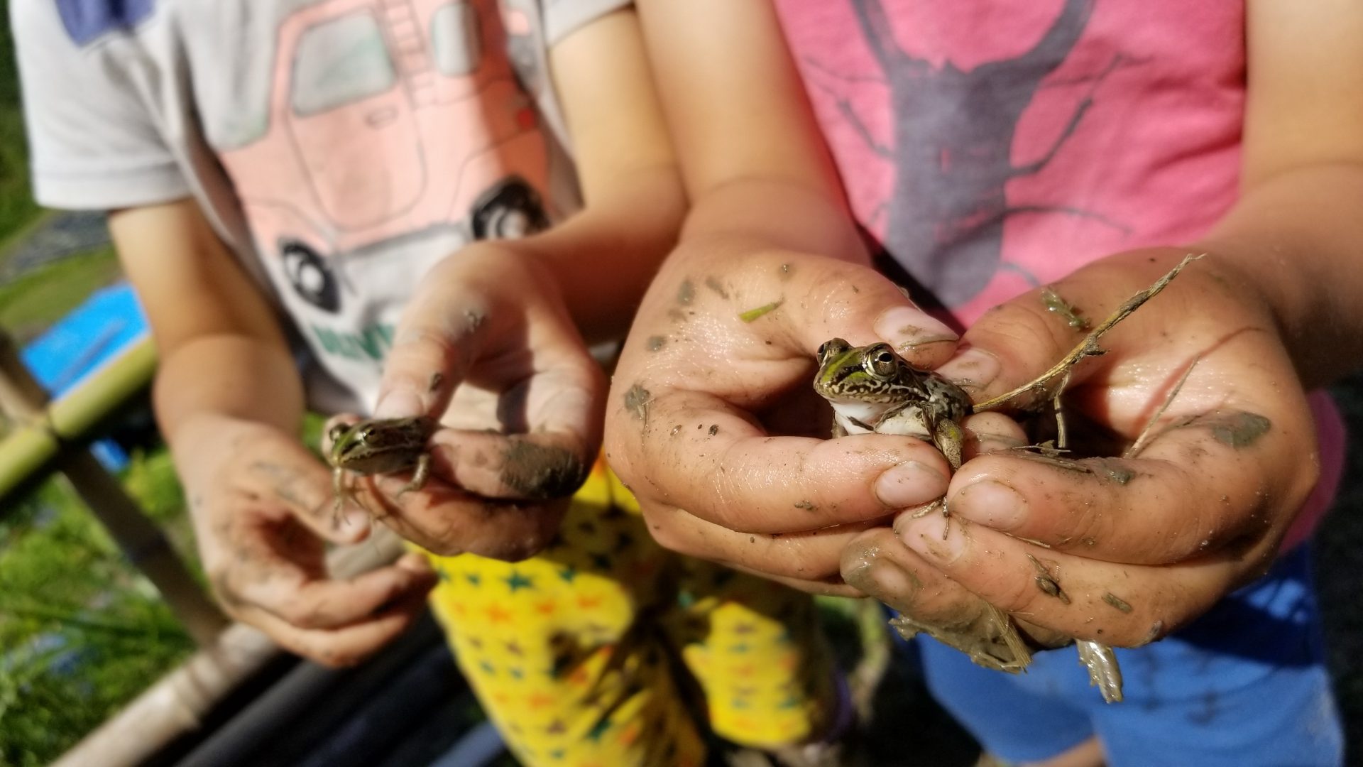 途中現れたカエルに目を奪われカエルに夢中になる子もいました。