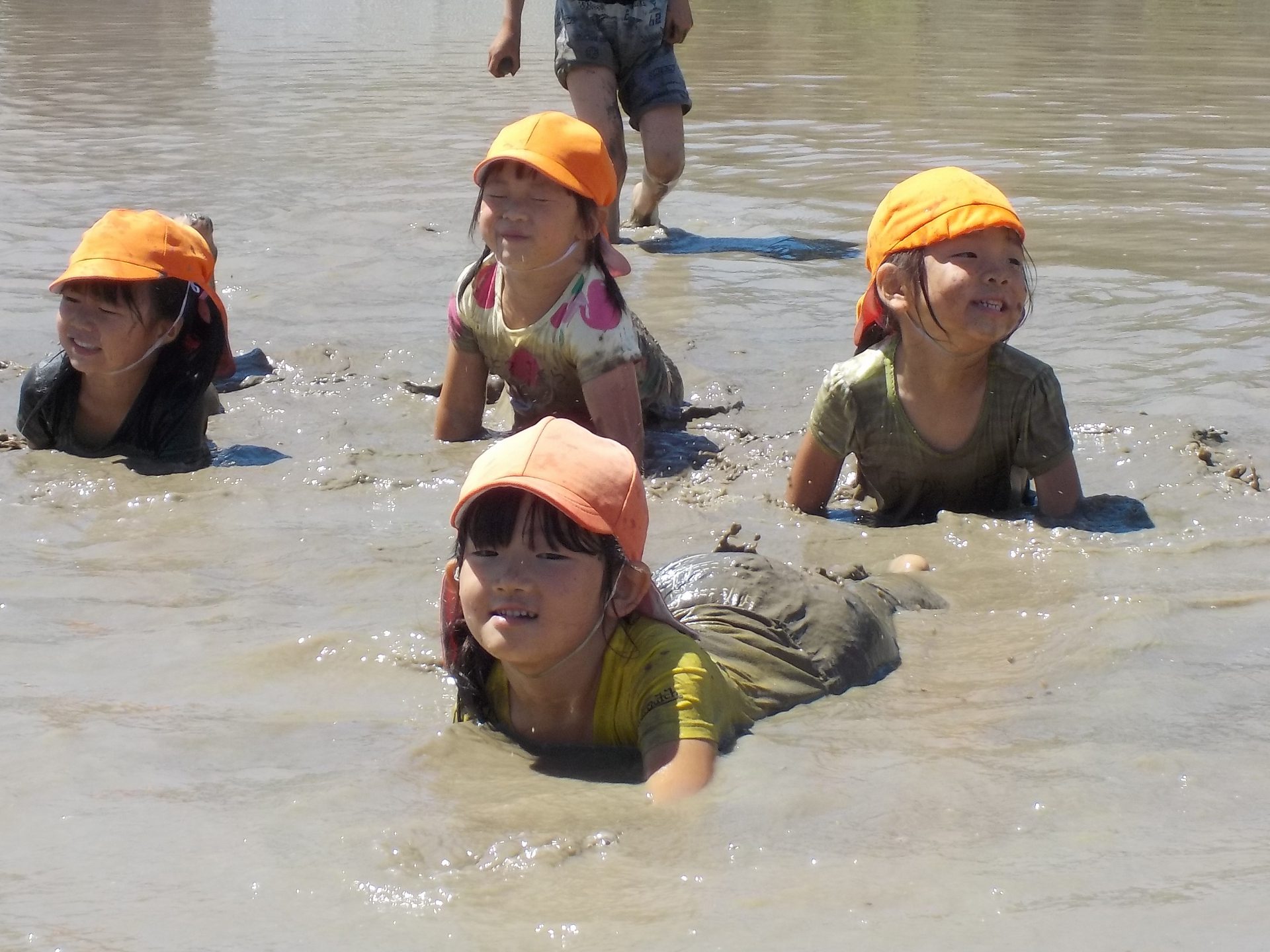 田植えの前に保育園の近隣の田んぼで泥遊びを楽しみました。