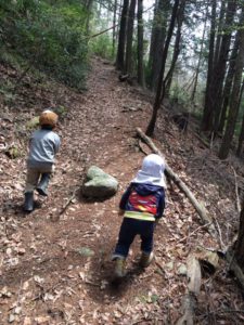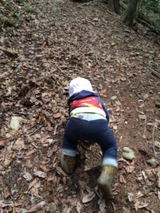 その時、2歳児男児のひとりが山道の斜面を一人で歩き始めた。