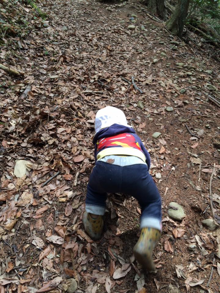 抜かして登っていった人たちは駆け足で先に進んだのでカーブを曲がり姿が見えなくなってしまった。急に辺りが静かになるが、2歳児はマイペースで休むこともなく歩き続ける。