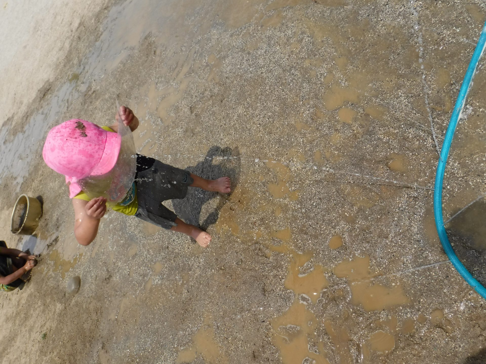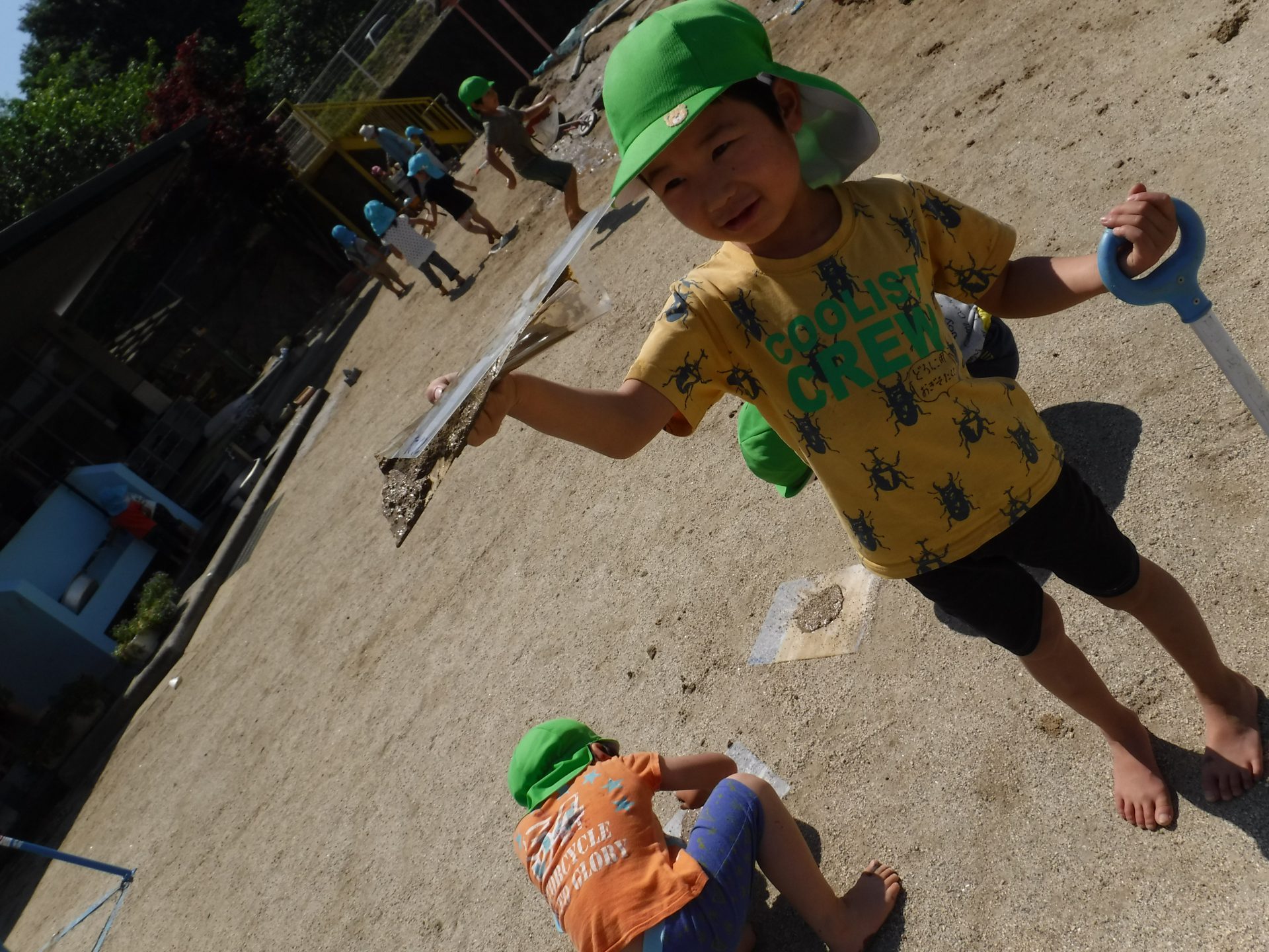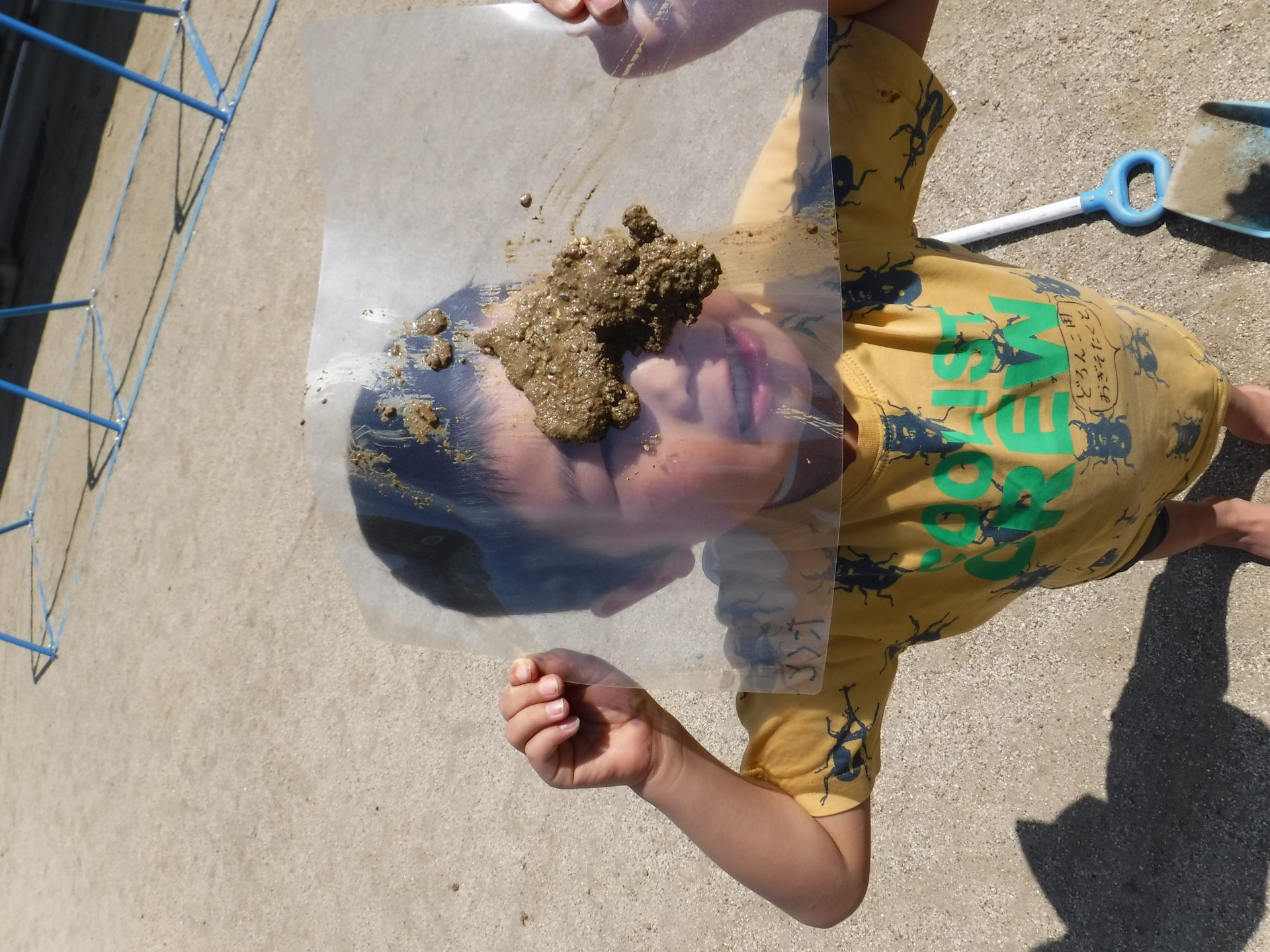 「先生!みてー(*’▽’)」昨日まで泥んこに触れずにいたのが嘘のよう!