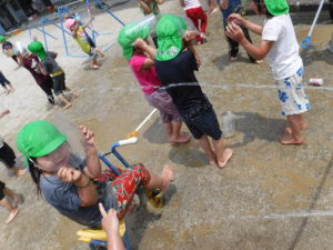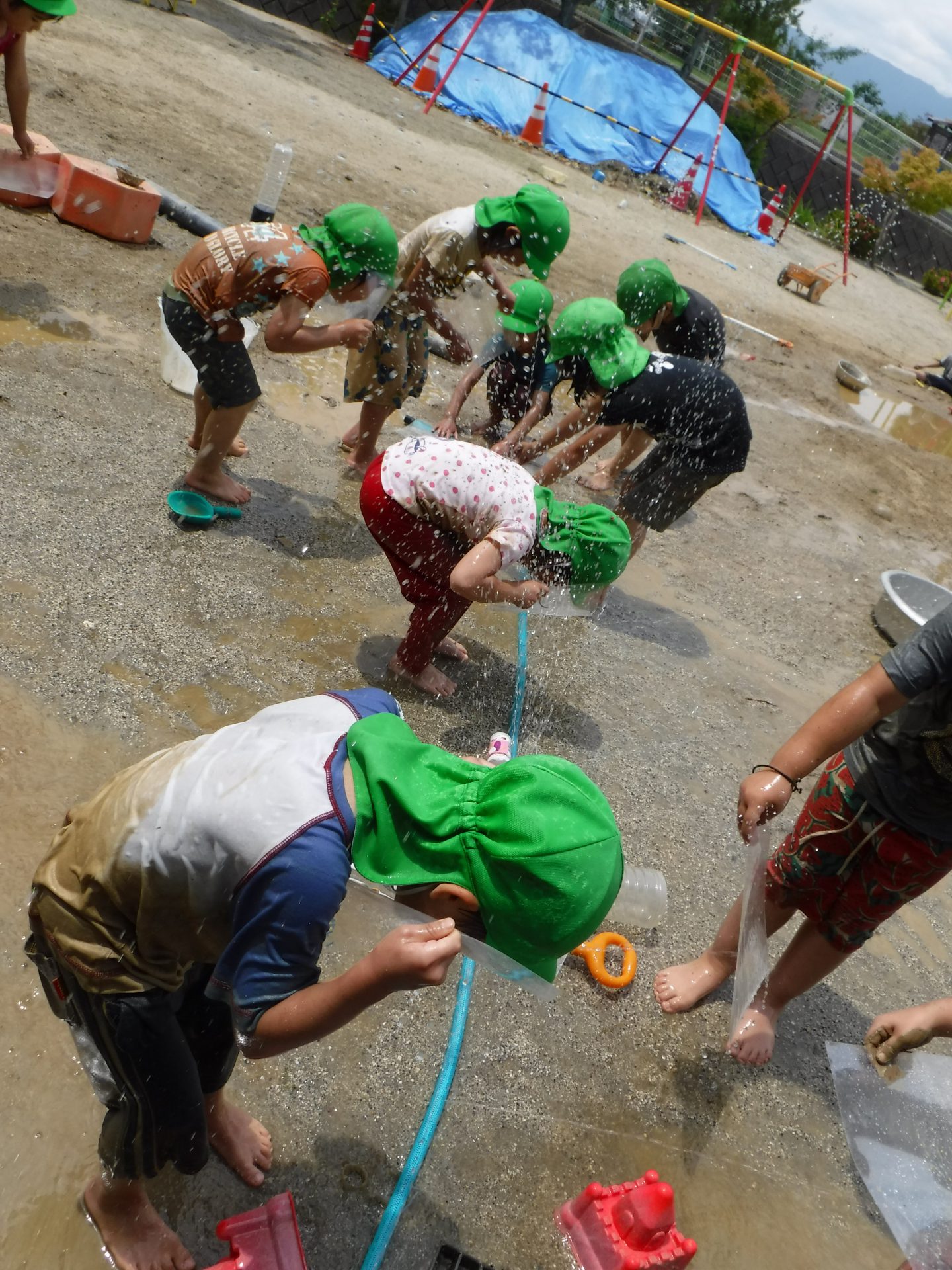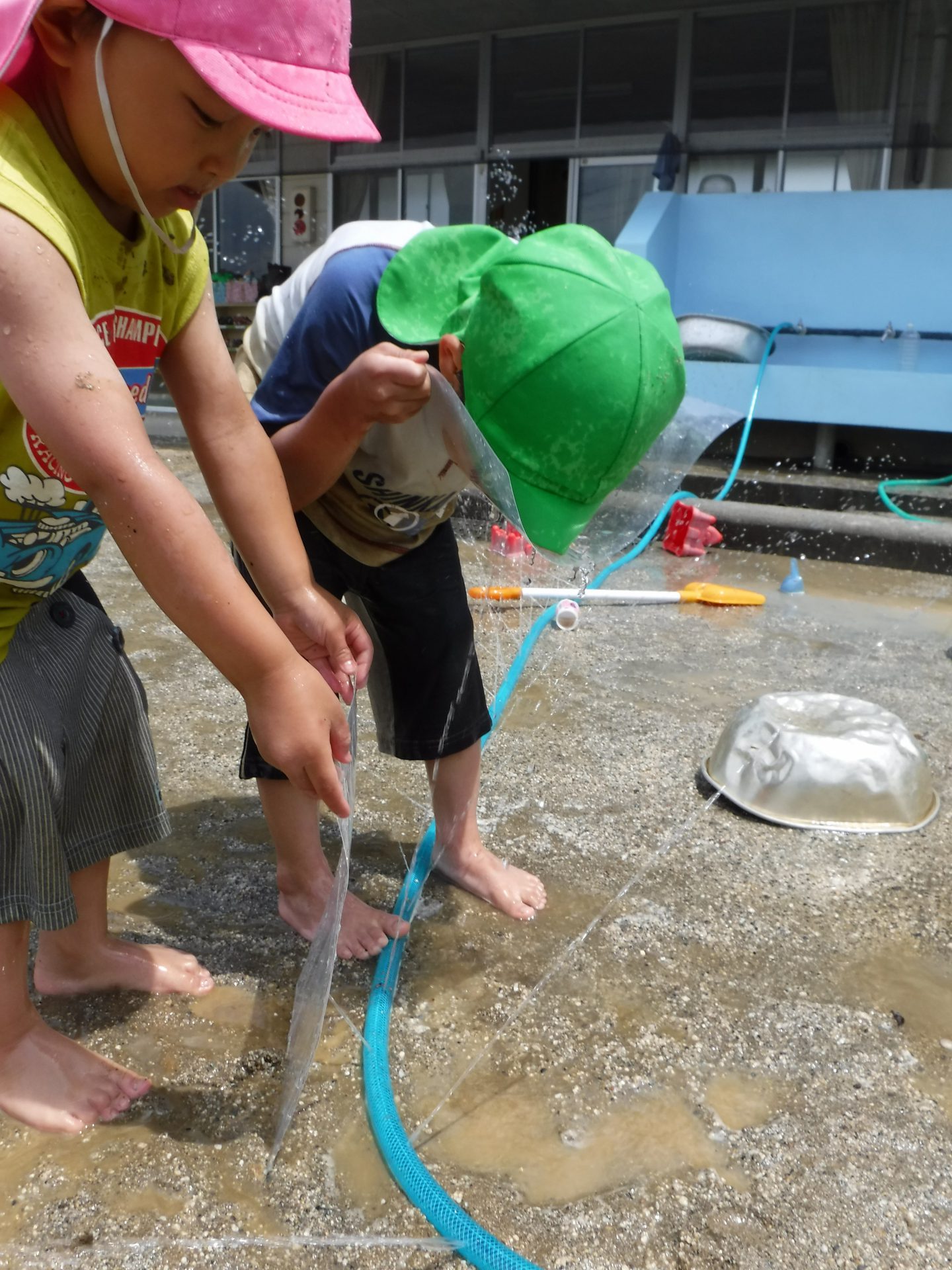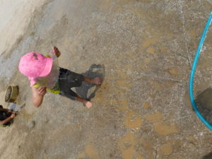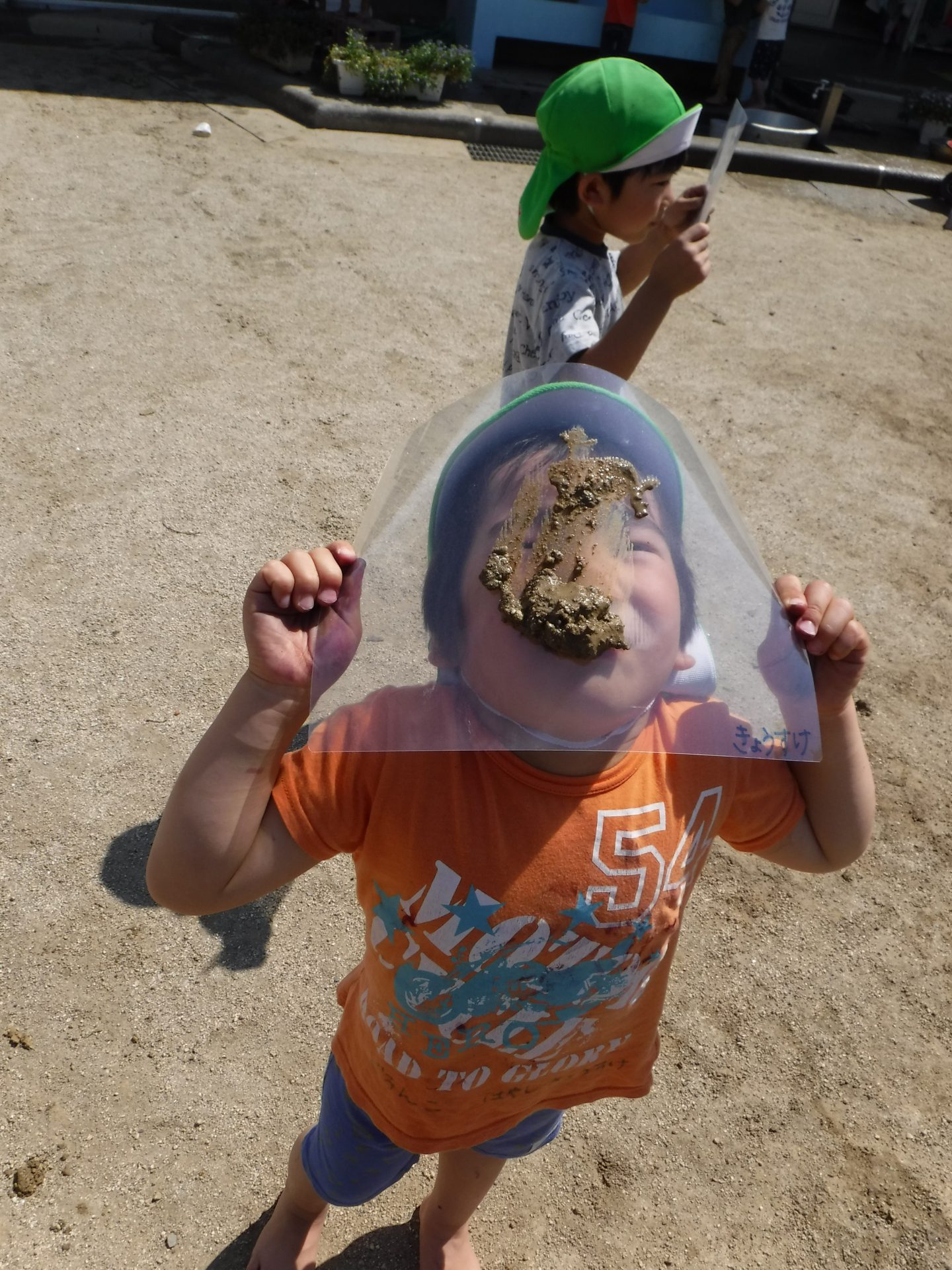 お水が出れば『泥んこシールド』に変身!顔にかかっても濡れないからお水も怖くないよ(^^♪