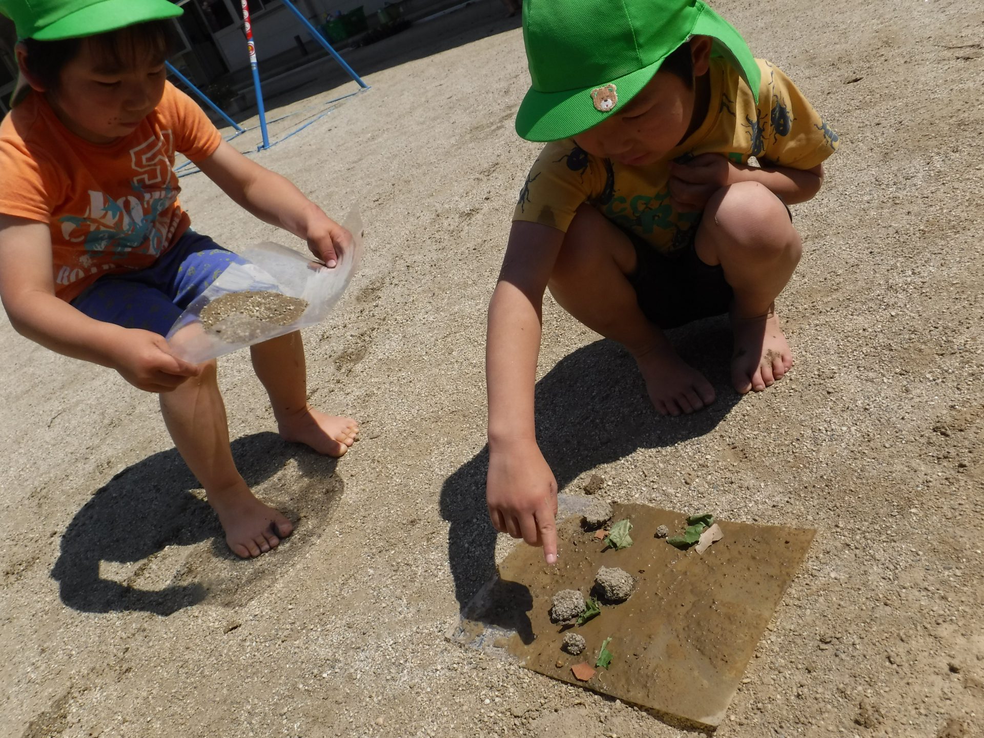 ・様々な角度から泥を『見る』ことで泥の不思議さや面白さ、形の自由さに気付いて遊びに取り入れてほしい。