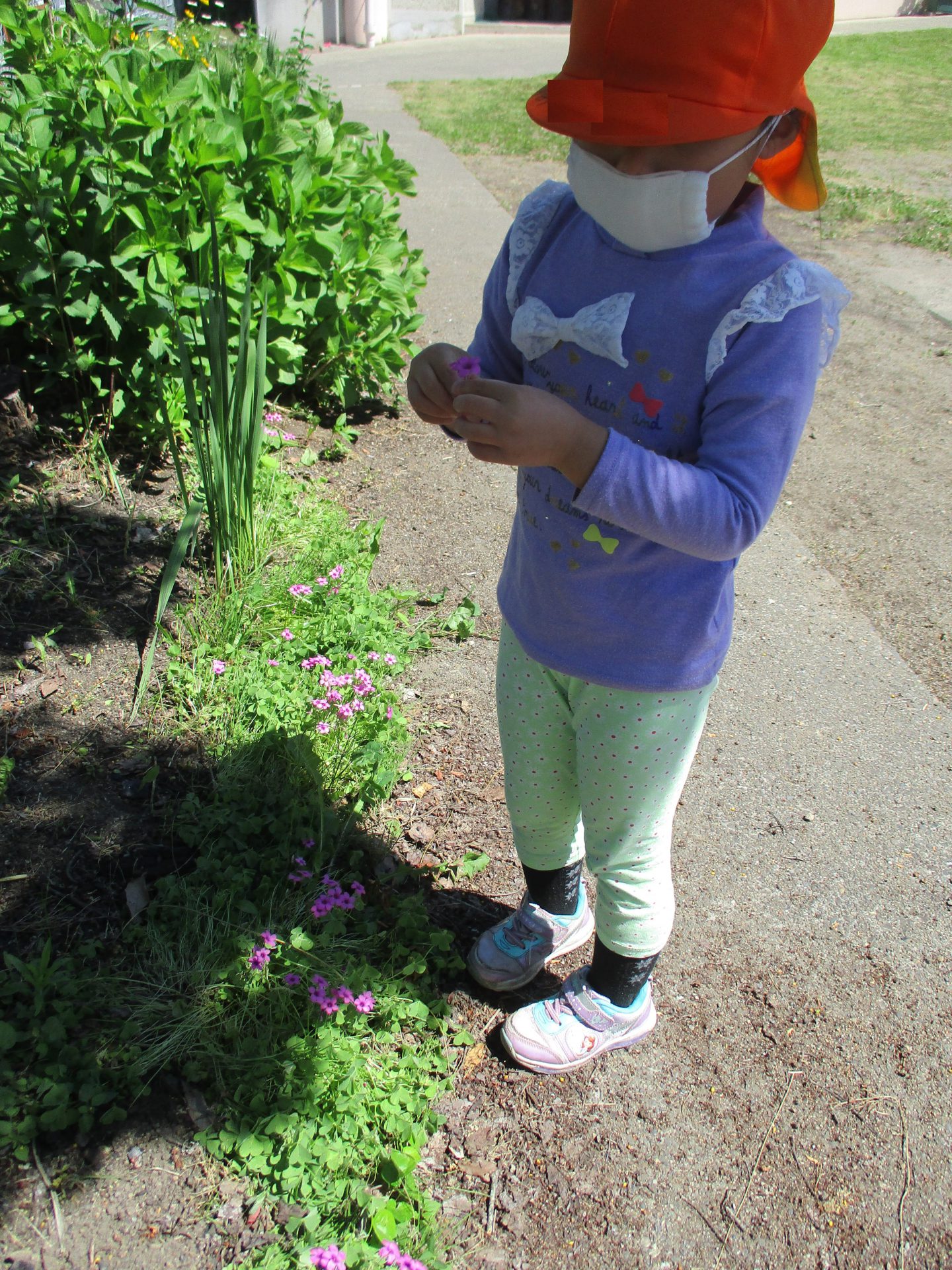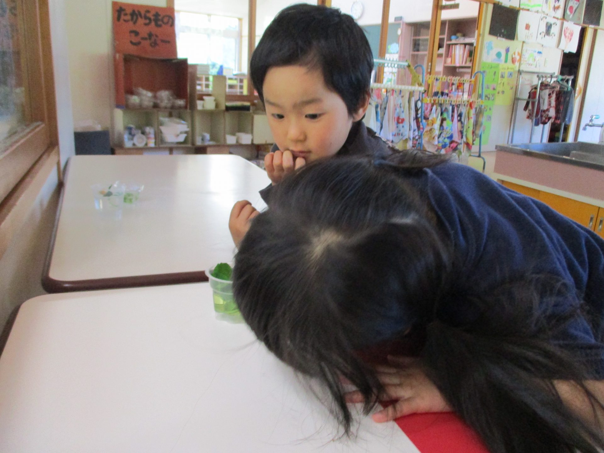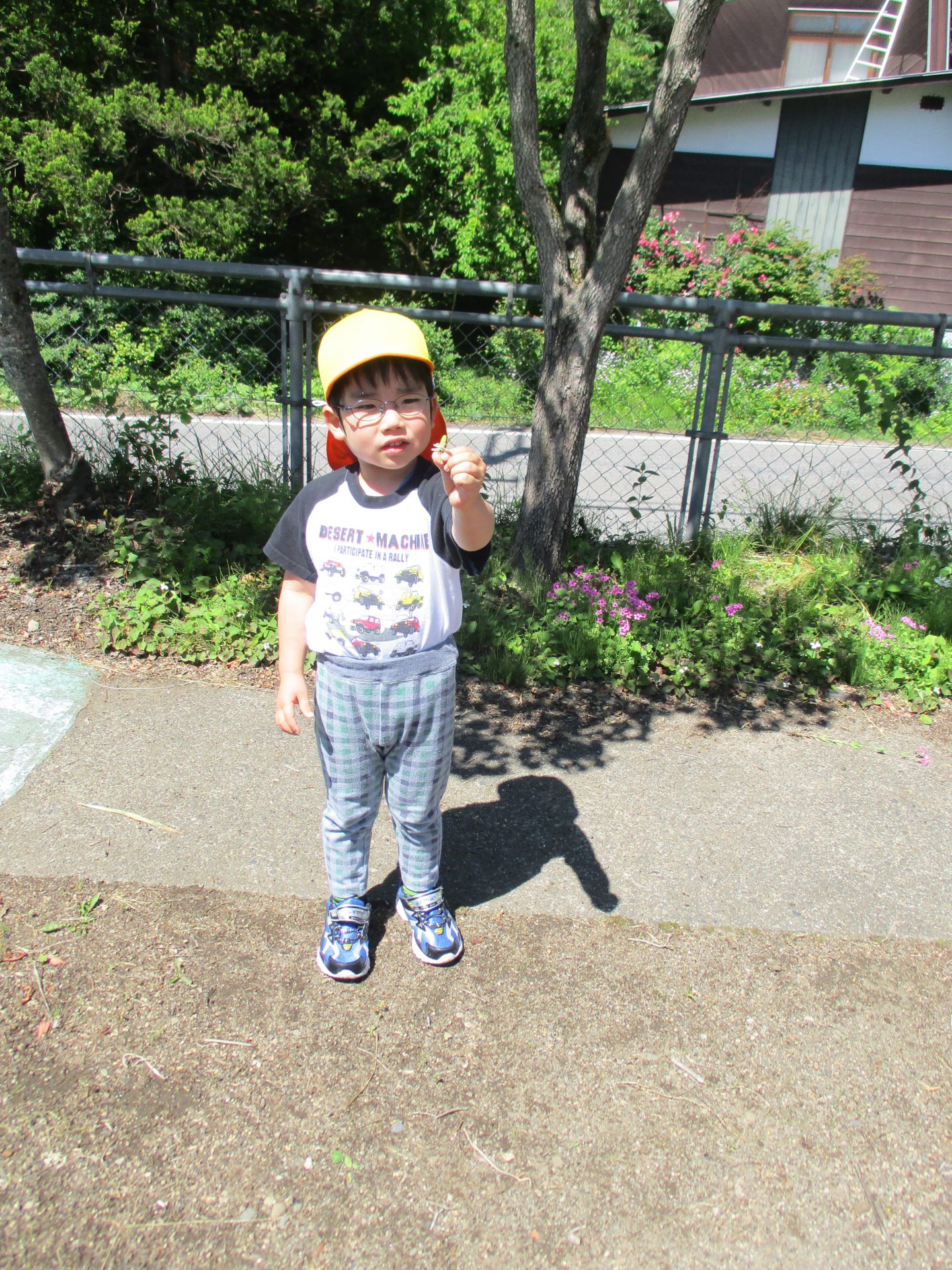 「お花、見つけたの」と、園庭で見つけたクローバーを持ってきてくれたお友達。