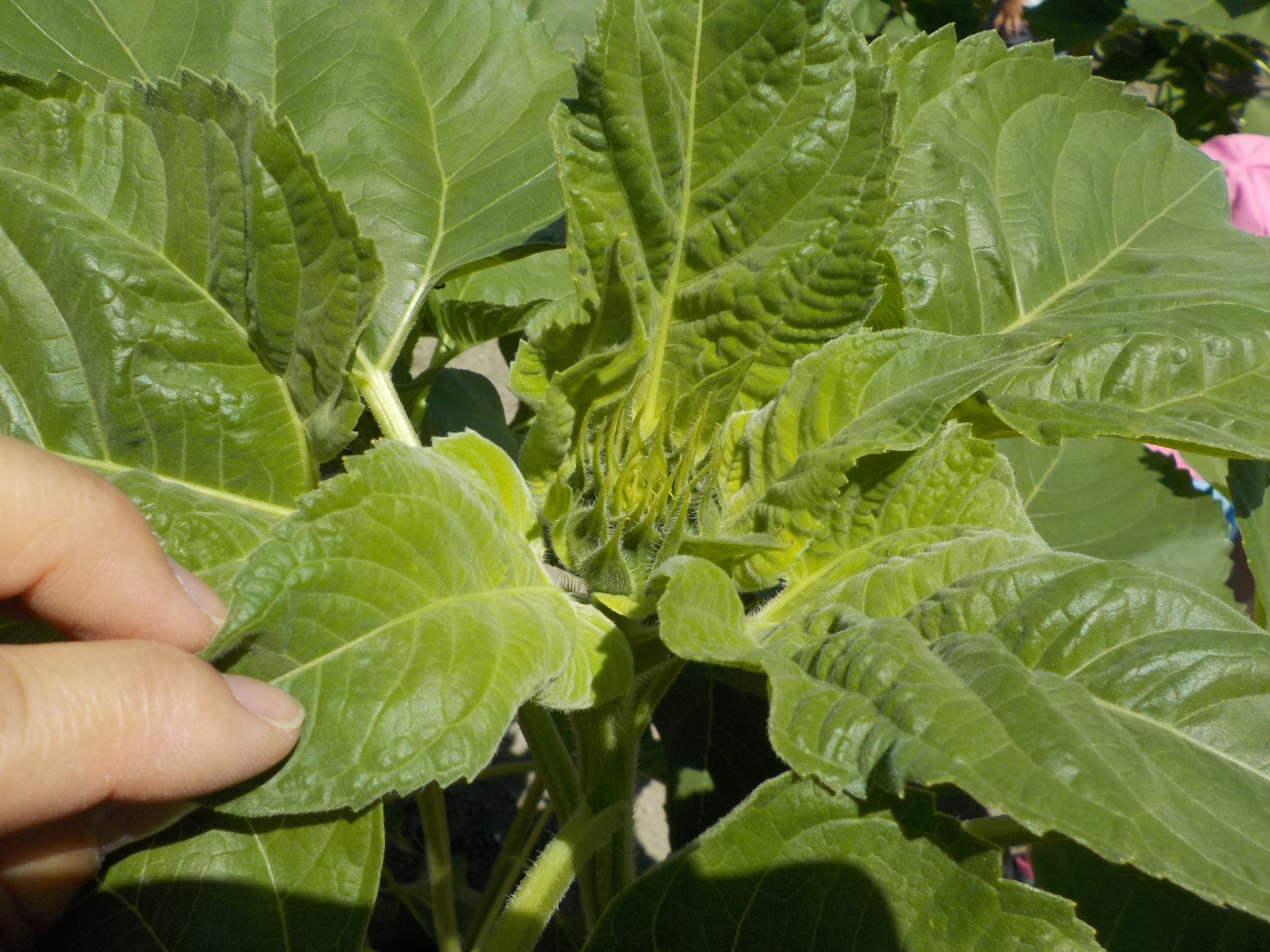 「ひまわりの葉っぱって、チクチクして痛いなー。」
