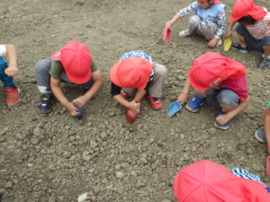 「くさい!」「これ何?」と興味津々ででシャベルを動かす子どもたち。
