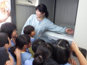 と、興味津々で機械の中を覗き込んだり匂いを嗅いでいました。