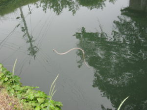 五稜郭のお堀に蛇が泳いでいて、気が付かなかった子ども達に写真を見せると