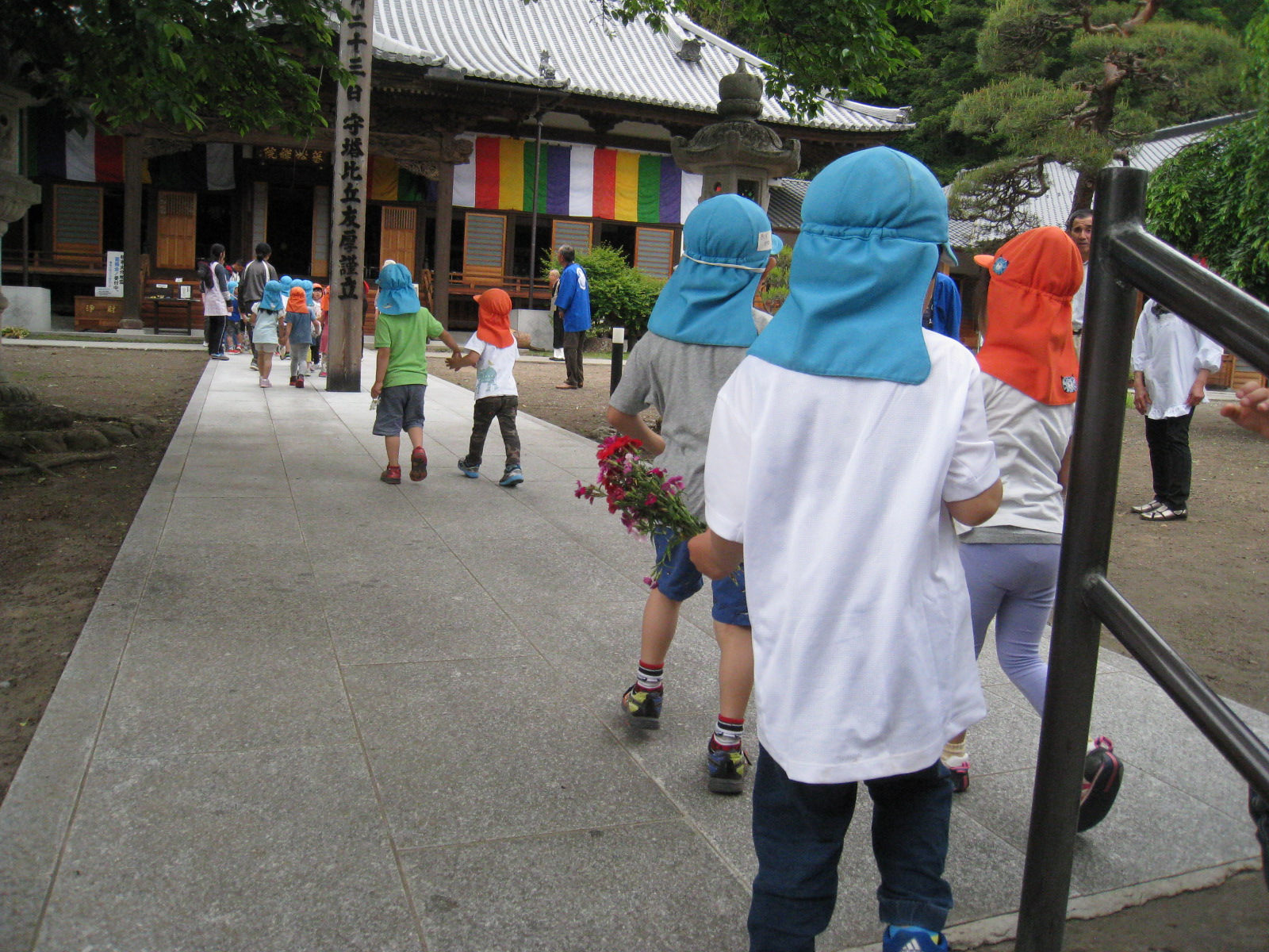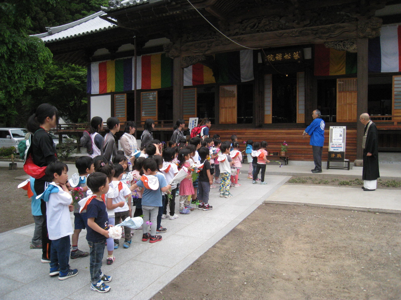 「お花まつりでお釈迦様の誕生日なんだよ。みんなが来てくれ喜んでいると思います。」