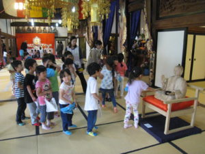 子ども達の身近で行われている行事を、子ども達向けにアレンジしていただき、なかなか入ることのない寺院の中を見せてもらい子ども達は、良い経験になりました。地域のことを知る良いきっかけになりました。