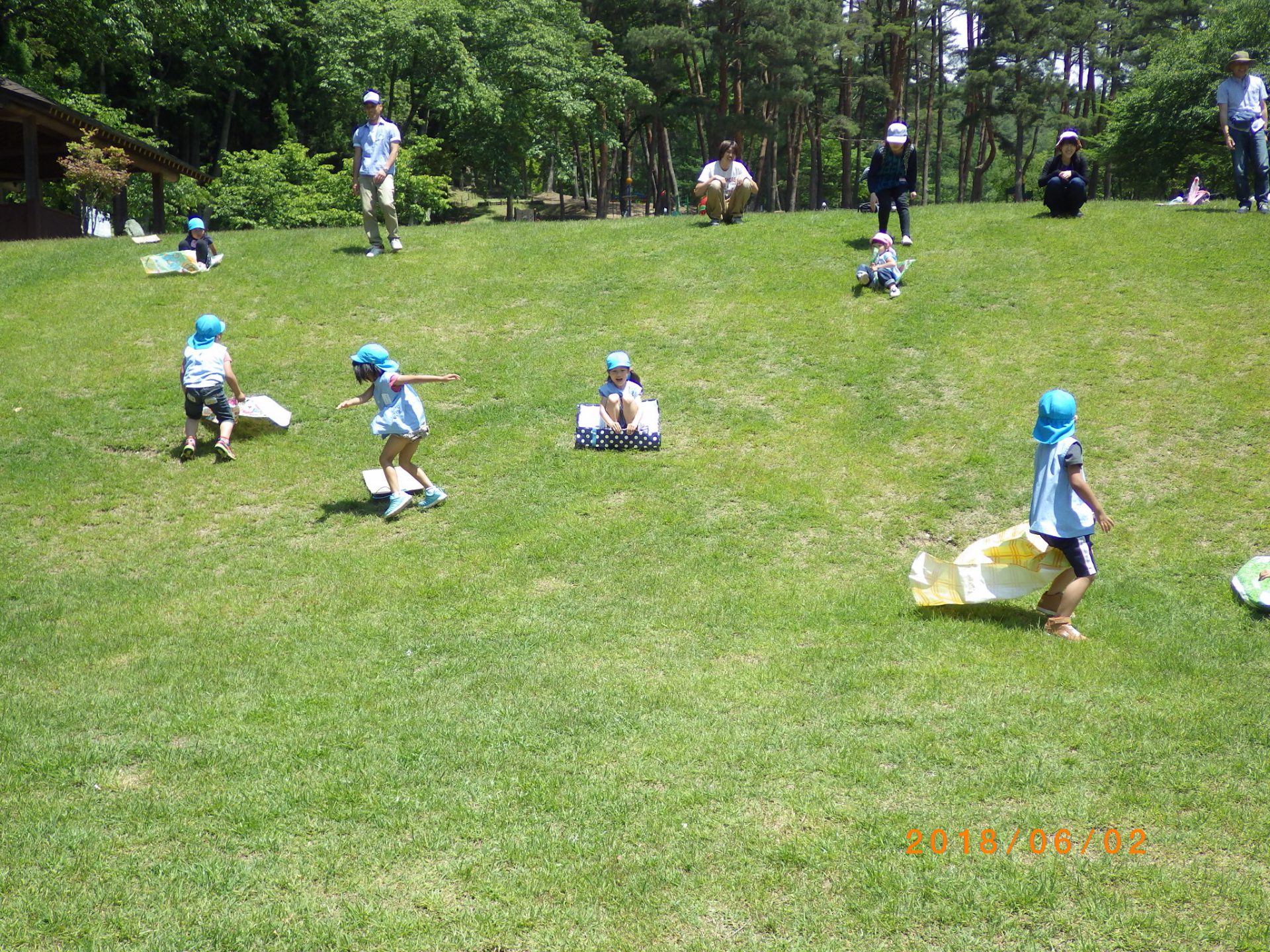 あれ!滑らない? おとうさん ひっぱて~!! 転がり下りるのも楽しいよ!